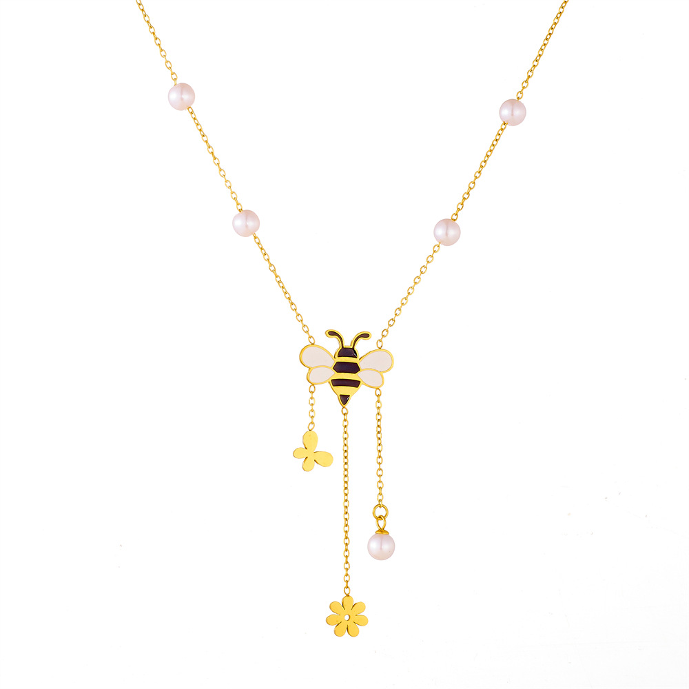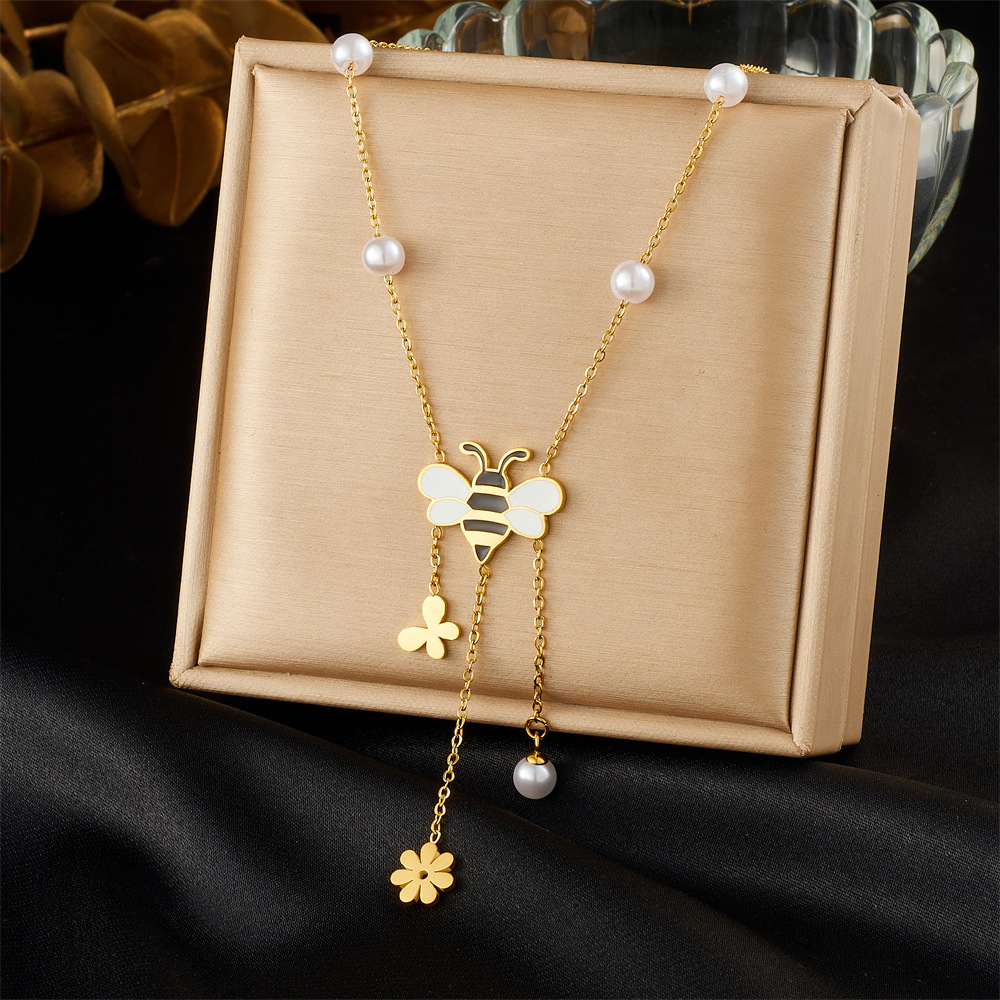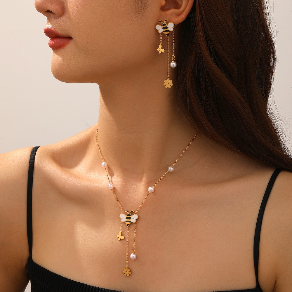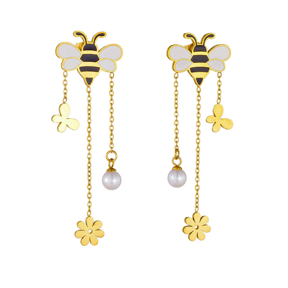 Korean Style Fresh and Sweet Cartoon Oil Dripping Bee Accessories Flower Butterfly Tassel Chain Stainless Steel Set