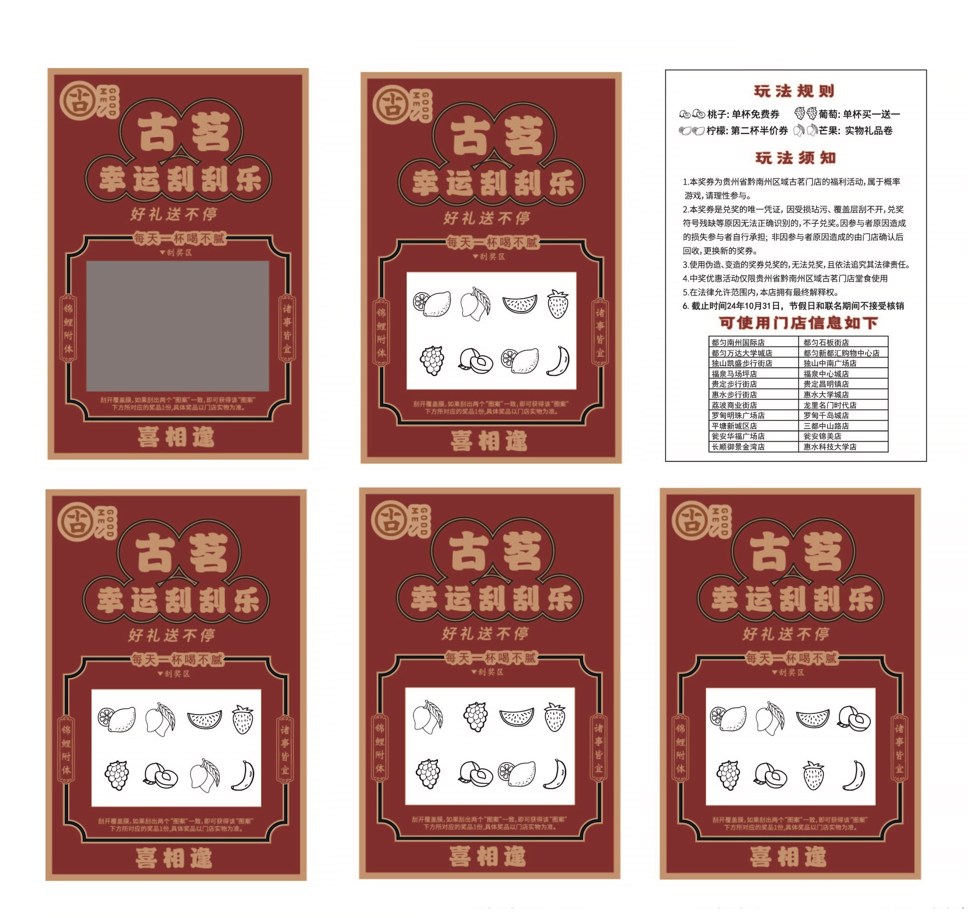 Specification: Fruit shop scratch card customization