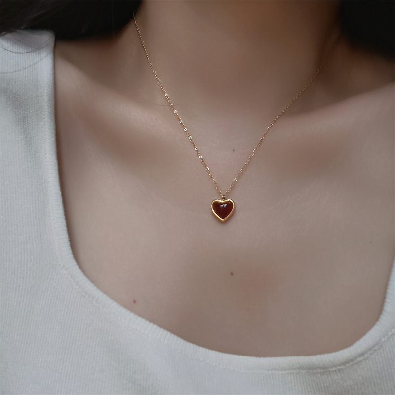 Color: 1【h305】three-dimensional heart-shaped necklace gold