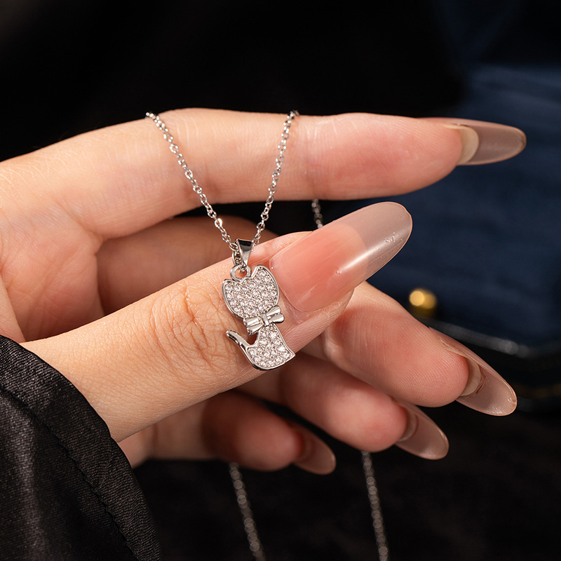 Cross-Border New Product Cat Necklace Female Personality Creative Kitten Hollow Pendant Temperament Fashion Versatile Clavicle Chain Wholesale