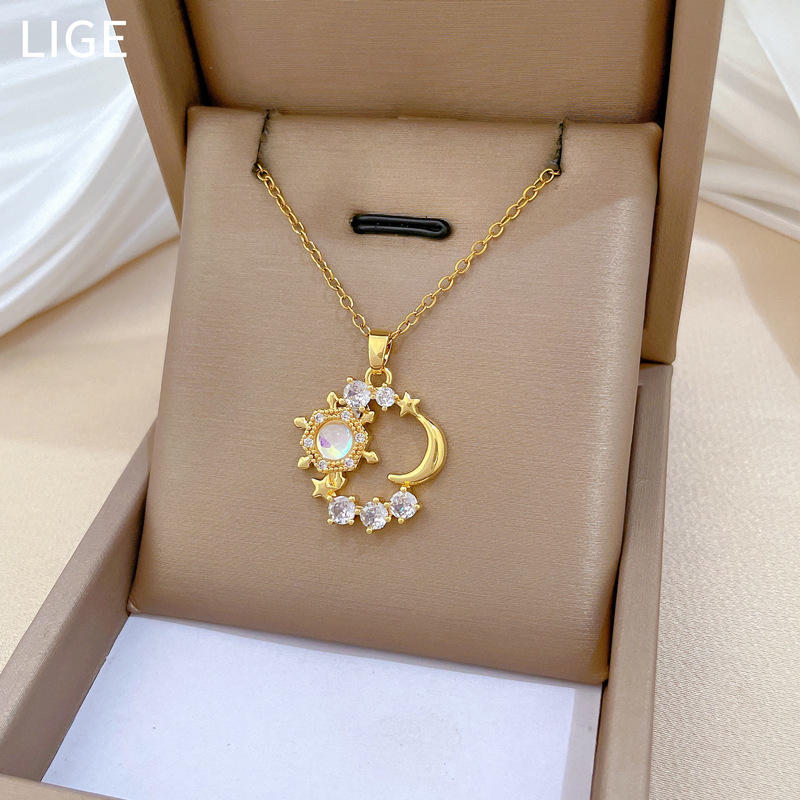 [Titanium Steel] Colorful Moon Star Light Luxury Luxurious Full Diamond Necklace Women's Easiest for Match Clavicle Chain Titanium Steel Chain