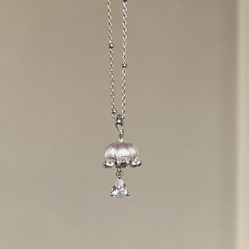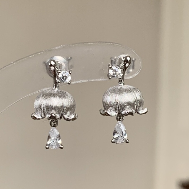 Color: Silver brushed lily of the valley flower drop stud earrings