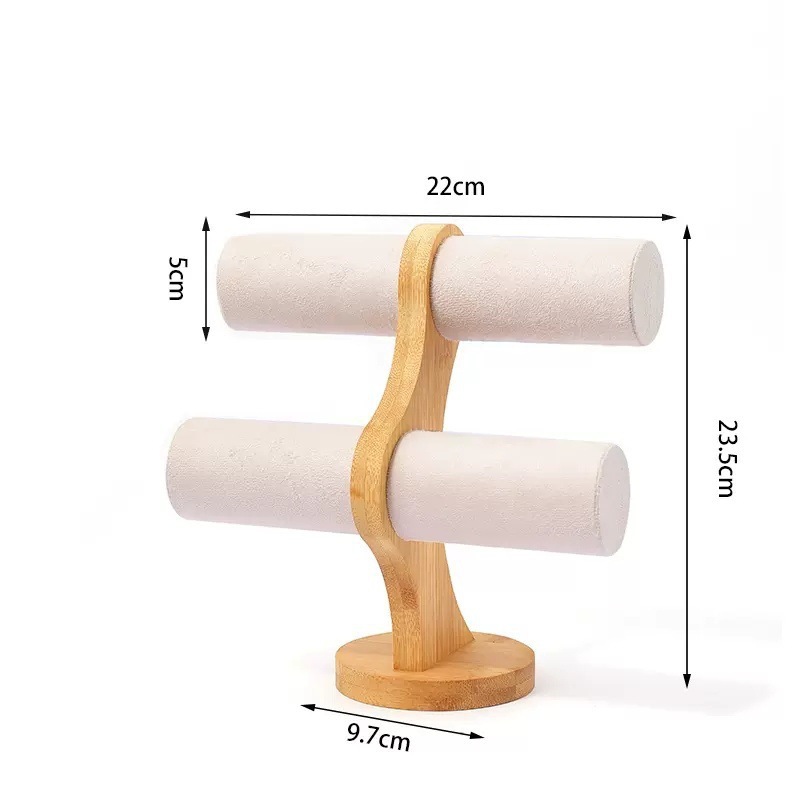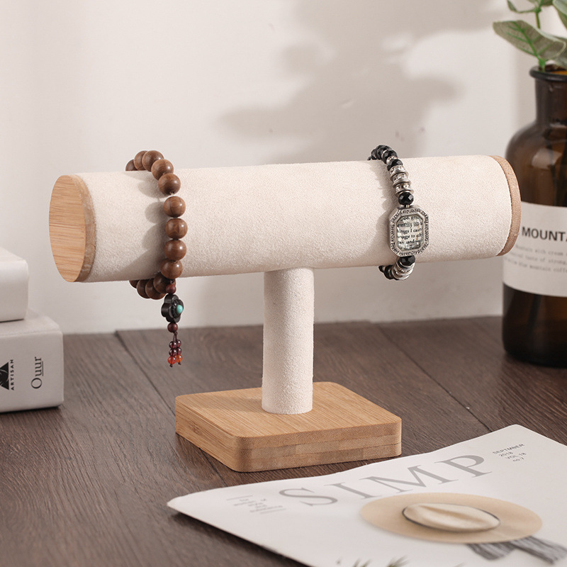 Bamboo wood cylinder single layer bracelet stand rice velvet