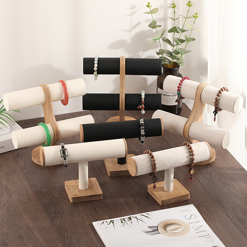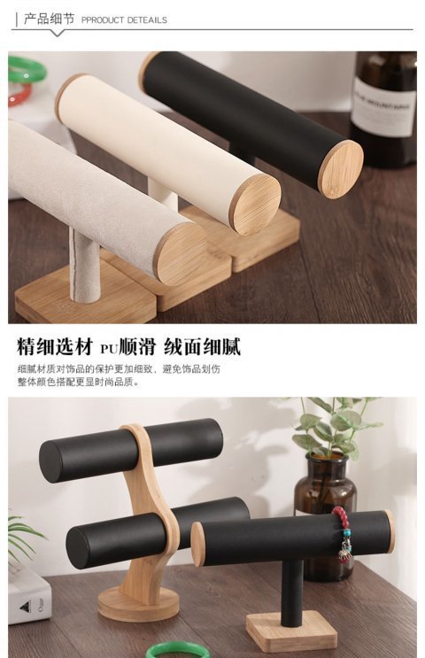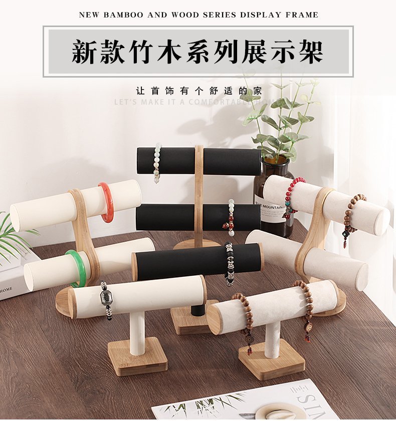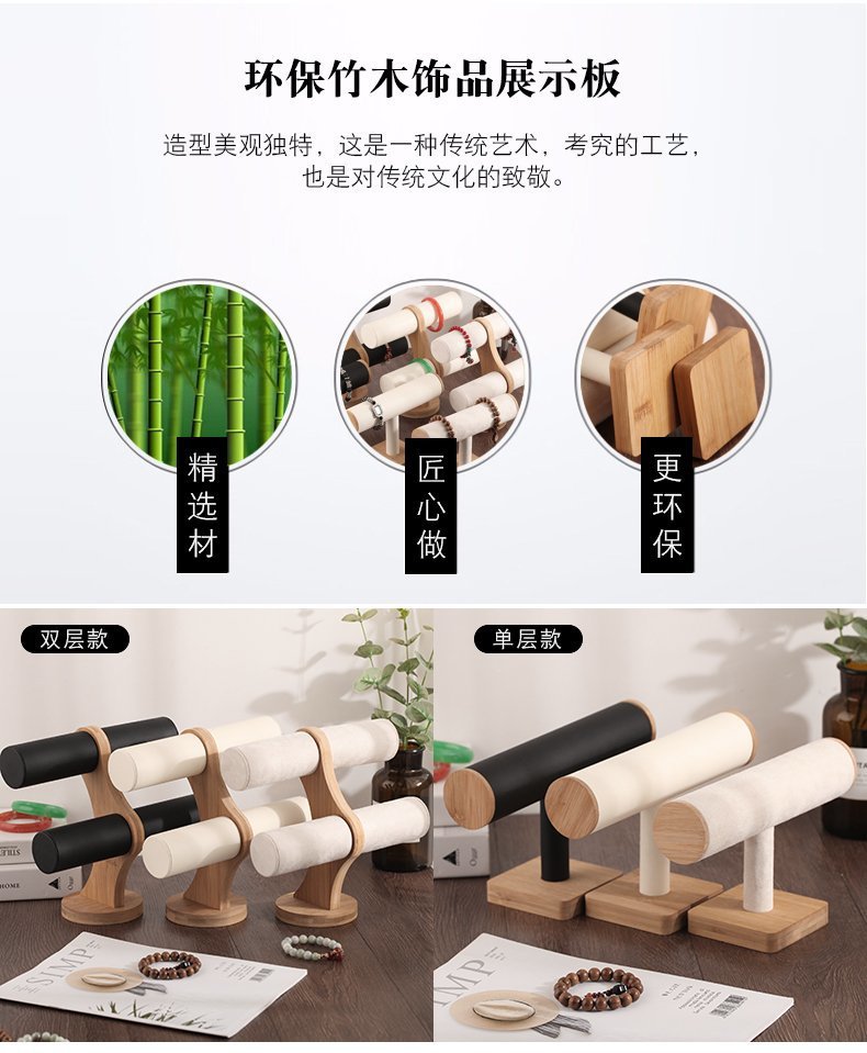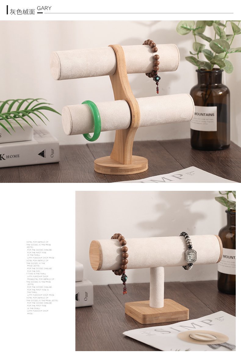 Color: Bamboo wood cylinder single layer bracelet stand rice velvet