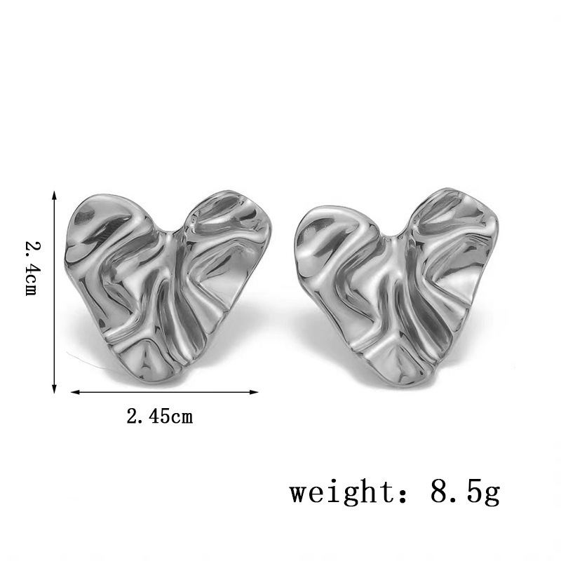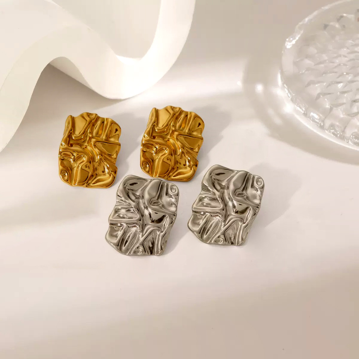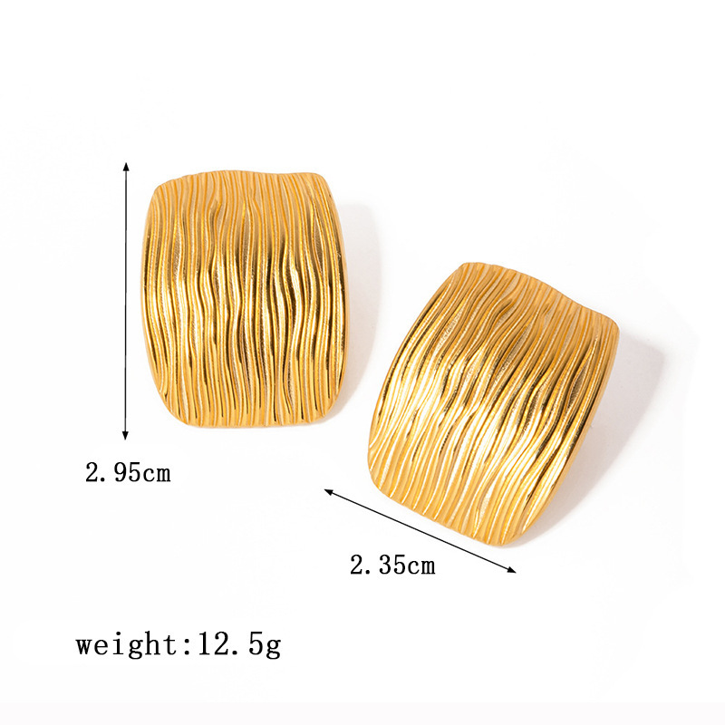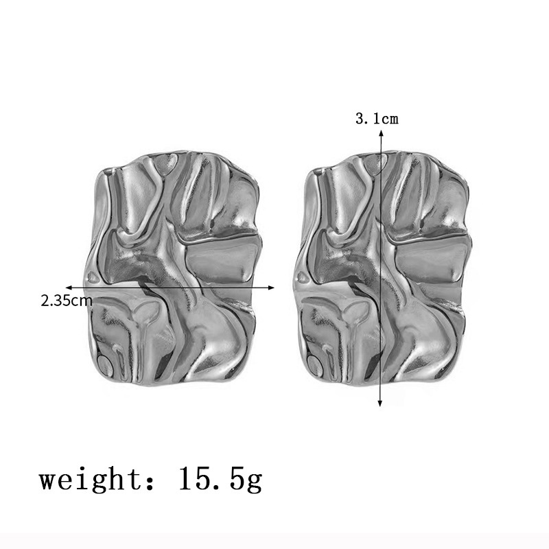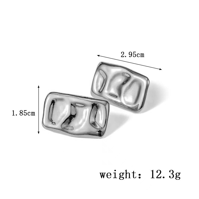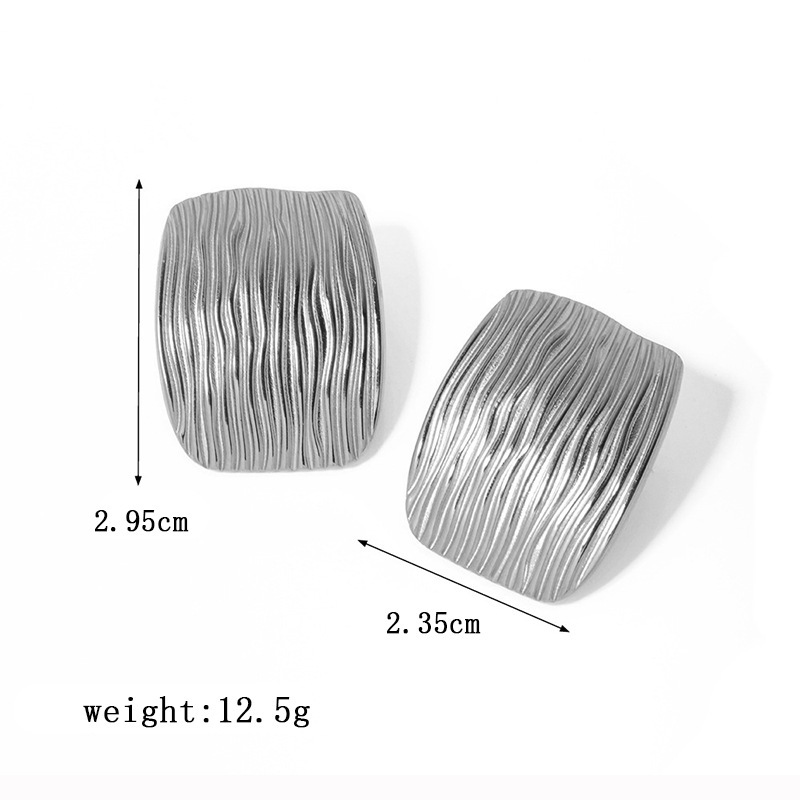 Color: 【xke0086】rectangular hammer pattern earrings steel color