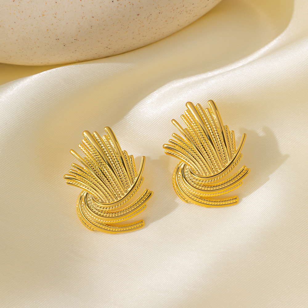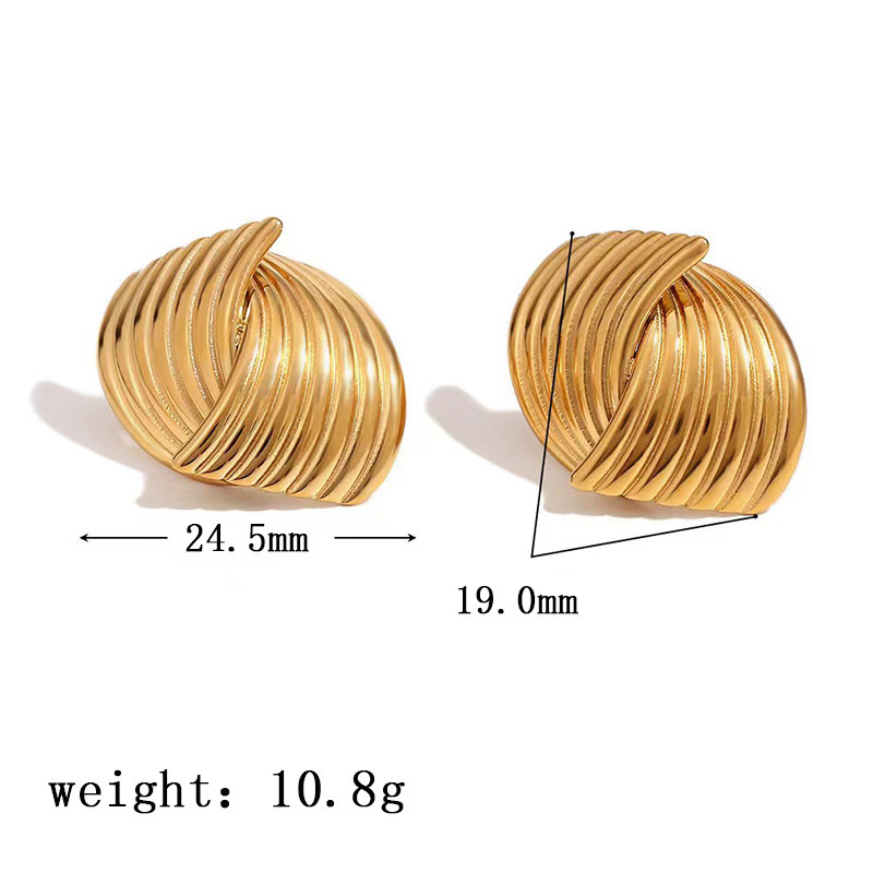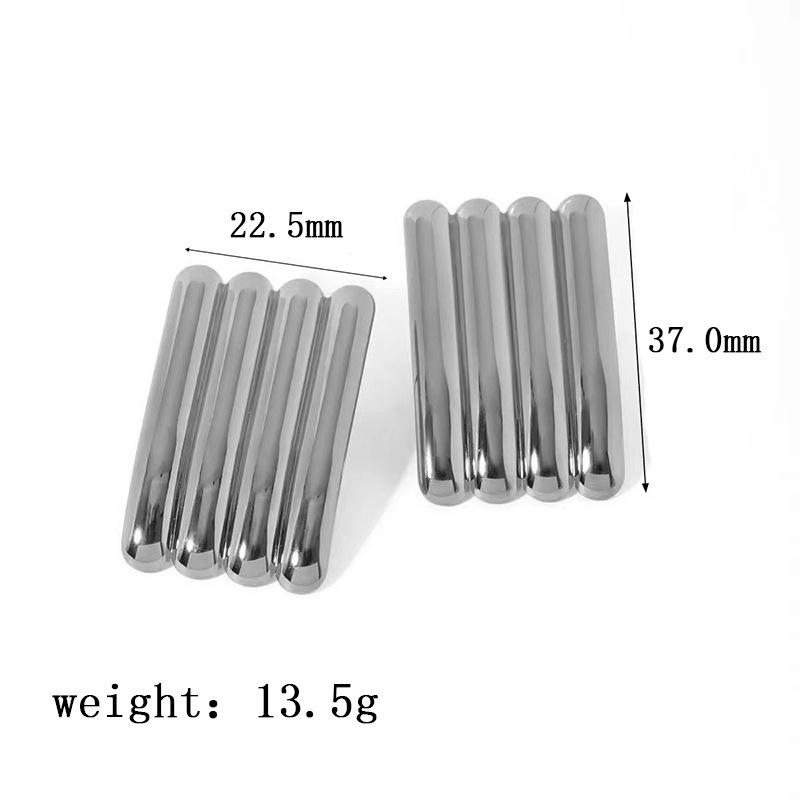 Color: 【xke0130】geometric stripes stud earrings steel color
