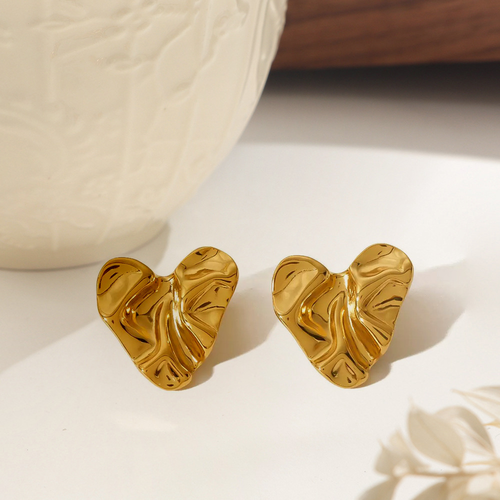 Color: 【xke0269】hammer pattern semicircle earrings gold