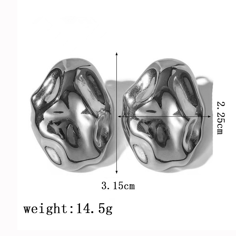 Color: 【xke0270】hammer pattern semicircle earrings steel color