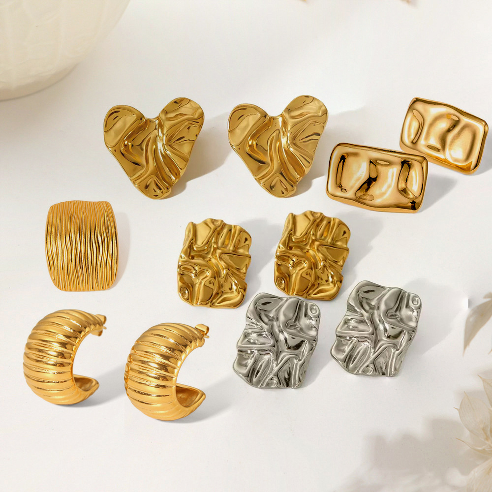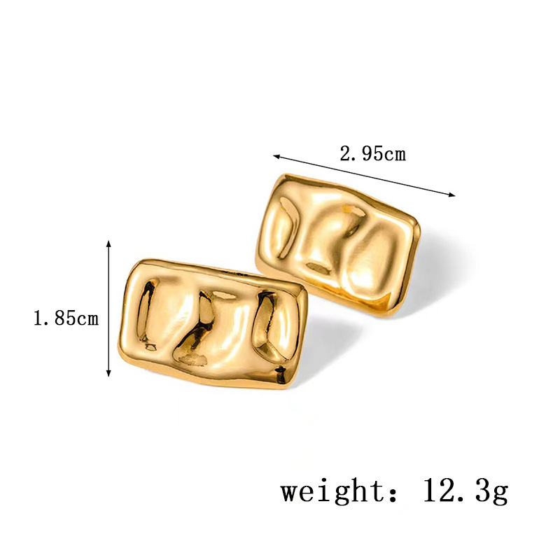 Color: 【xke0085】rectangular hammer pattern earrings gold