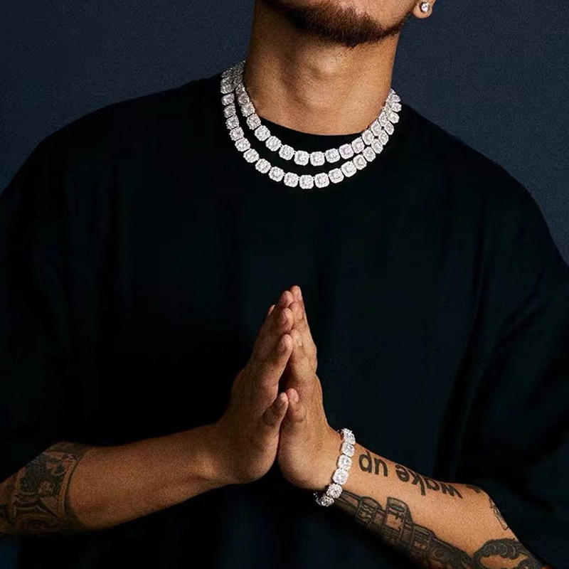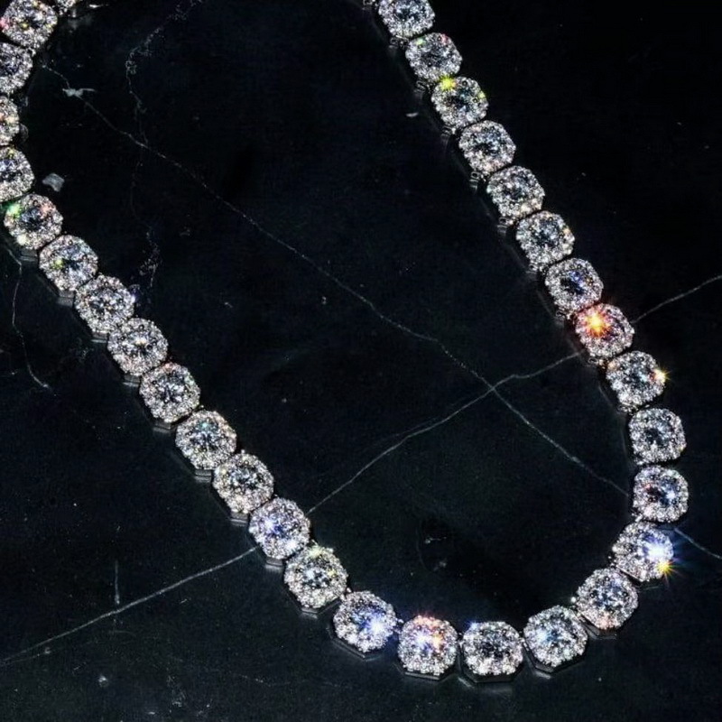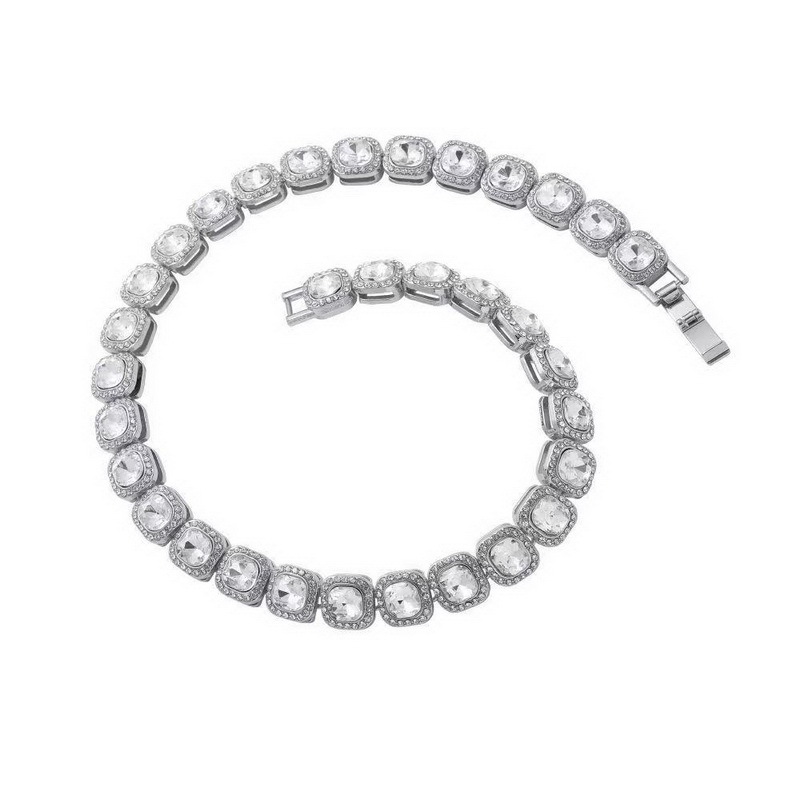 Color: Silver diamond-encrusted rock candy necklace 45cm short style recommended for girls