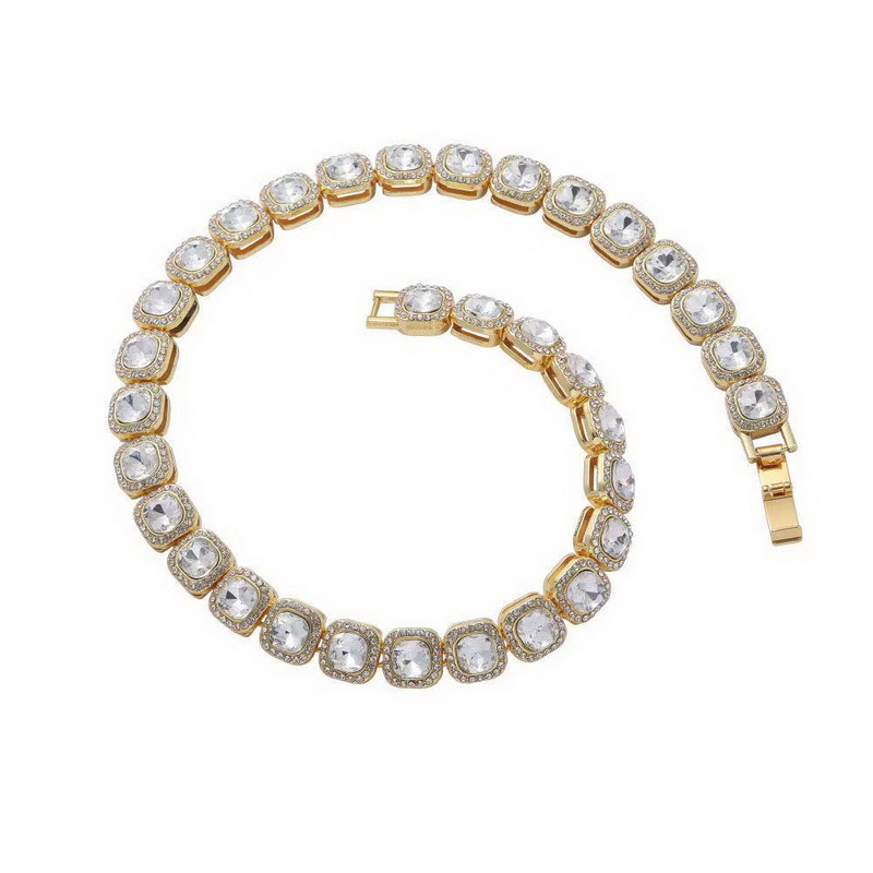 Color: Gold diamond-encrusted rock sugar necklace 45cm short style recommended for girls