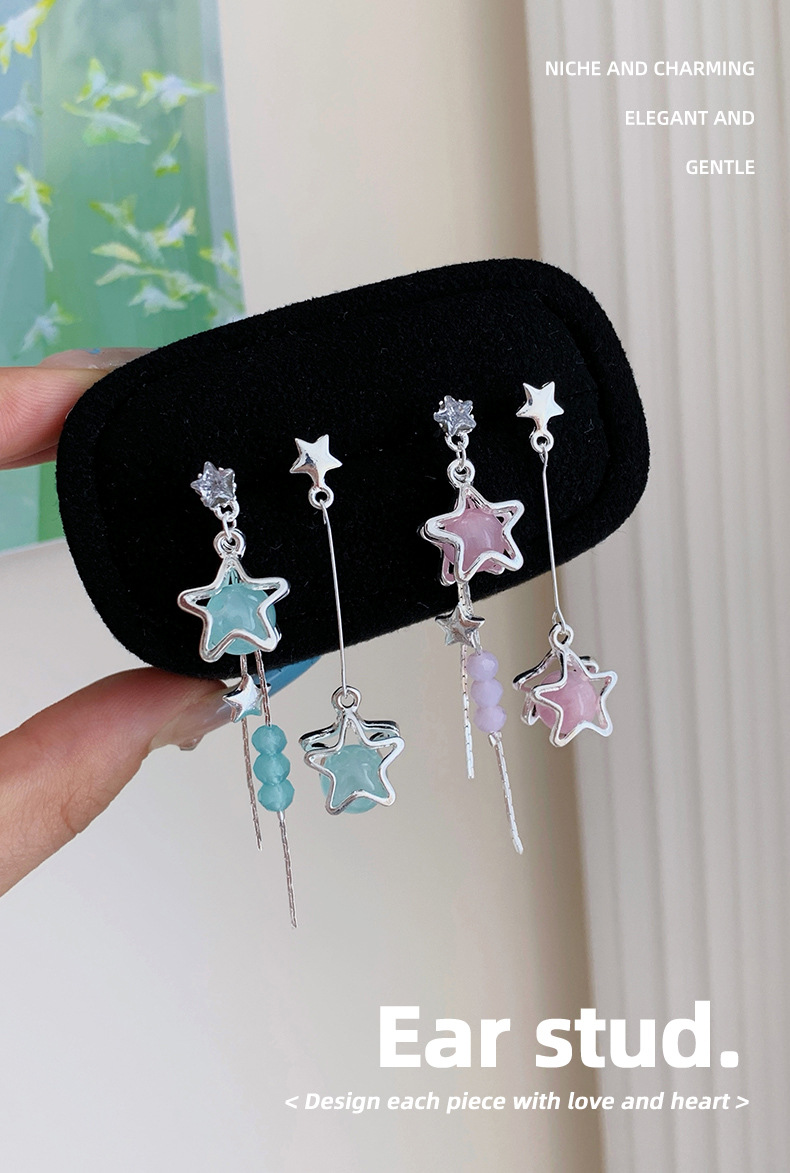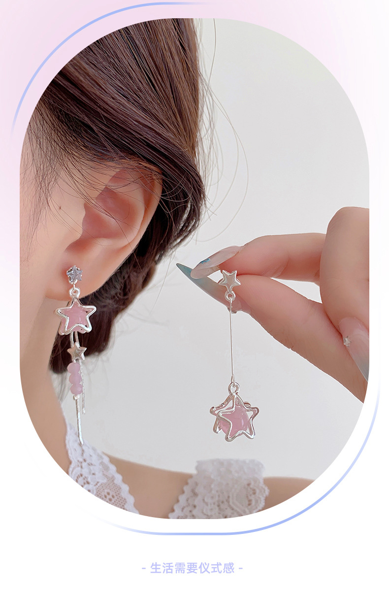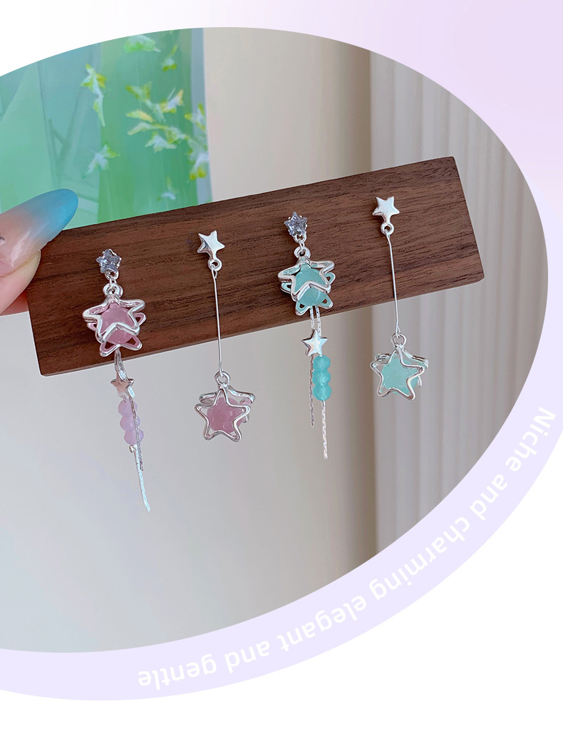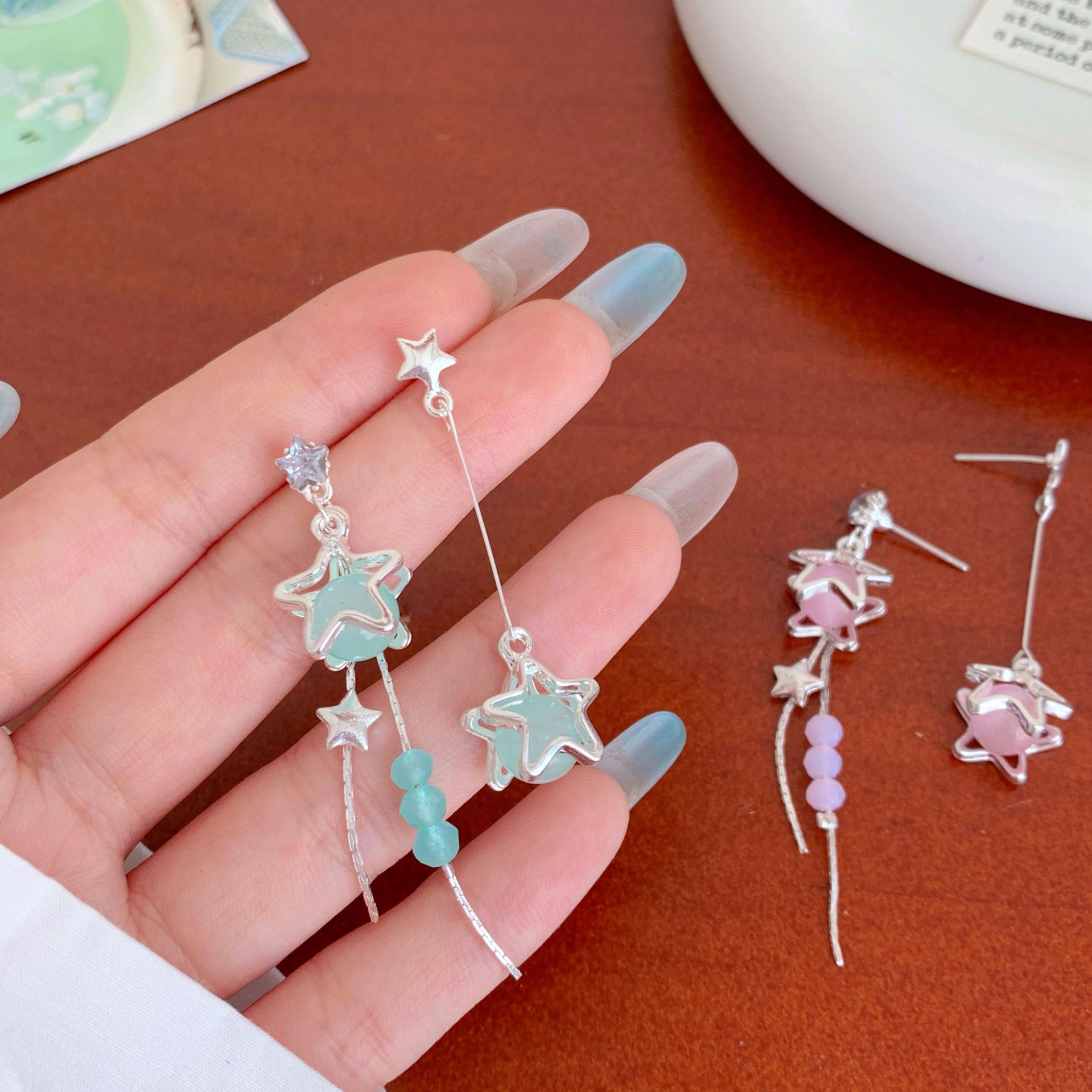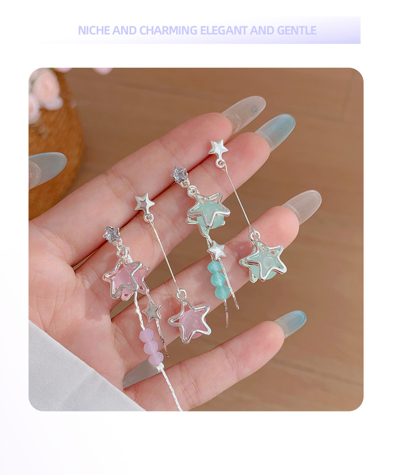 Pink Blue Star Handmade Beaded Earrings for Women Silver Needle Summer Super Fairy Exquisite Gentle Sweet Long Tassel Earrings