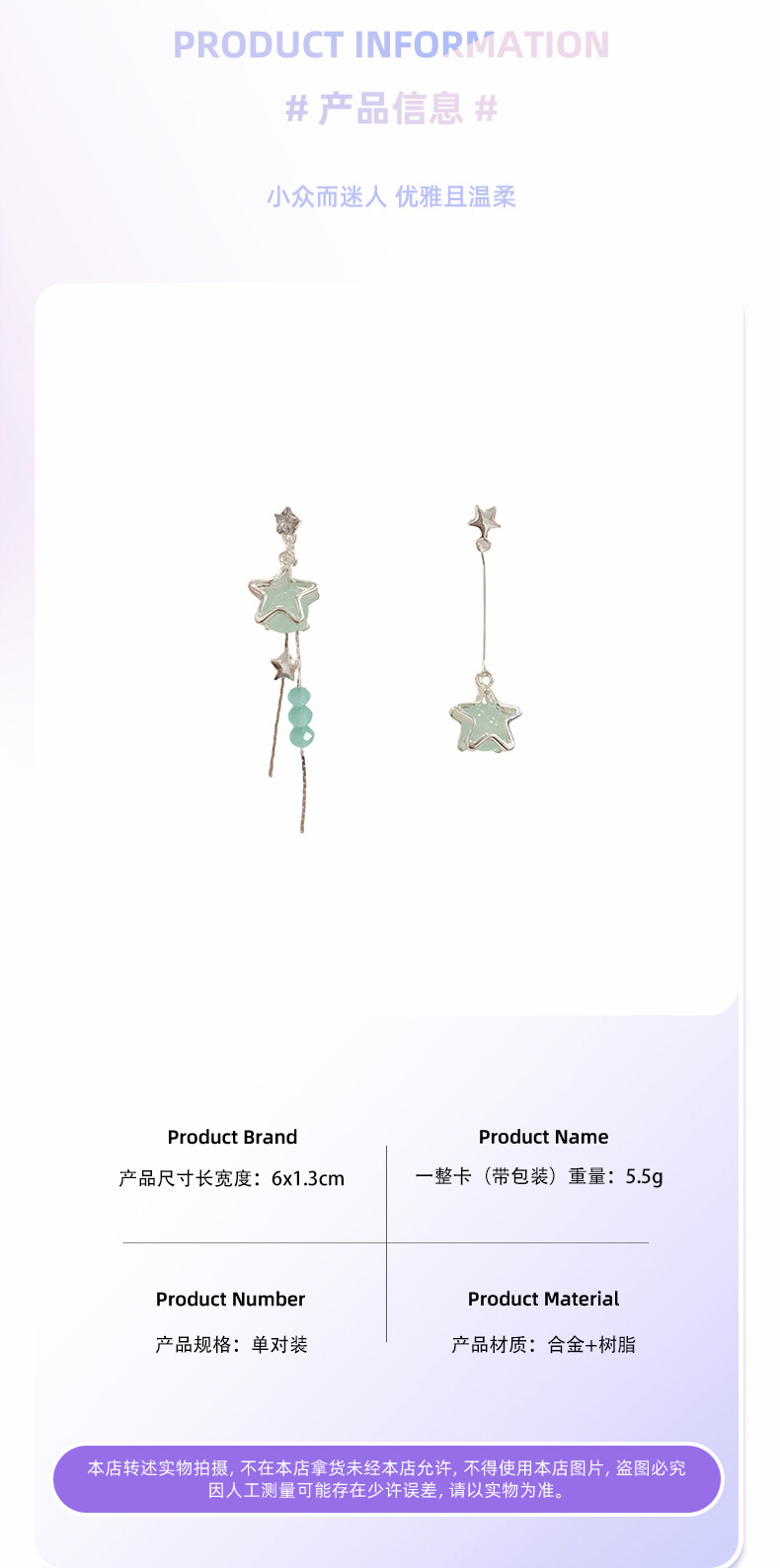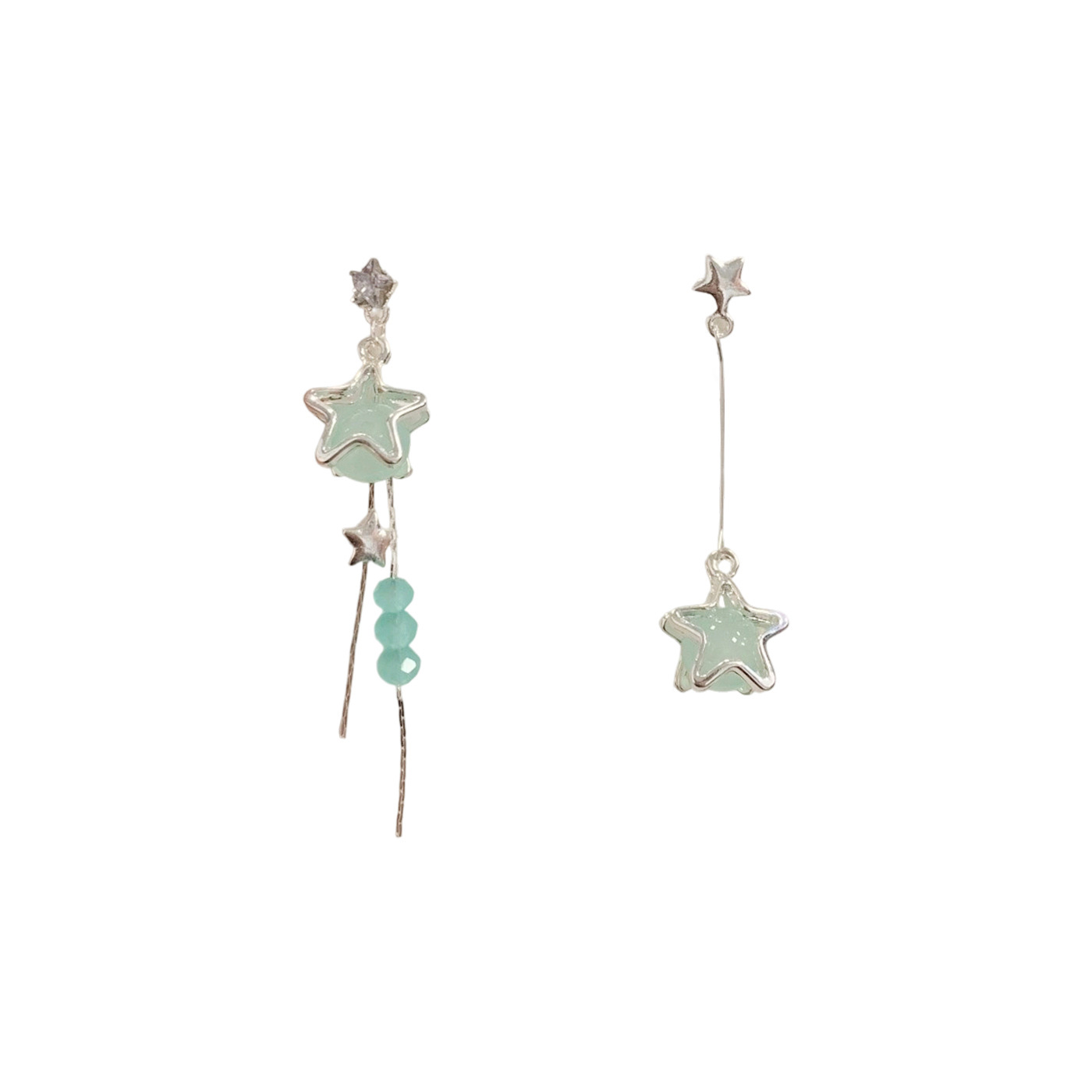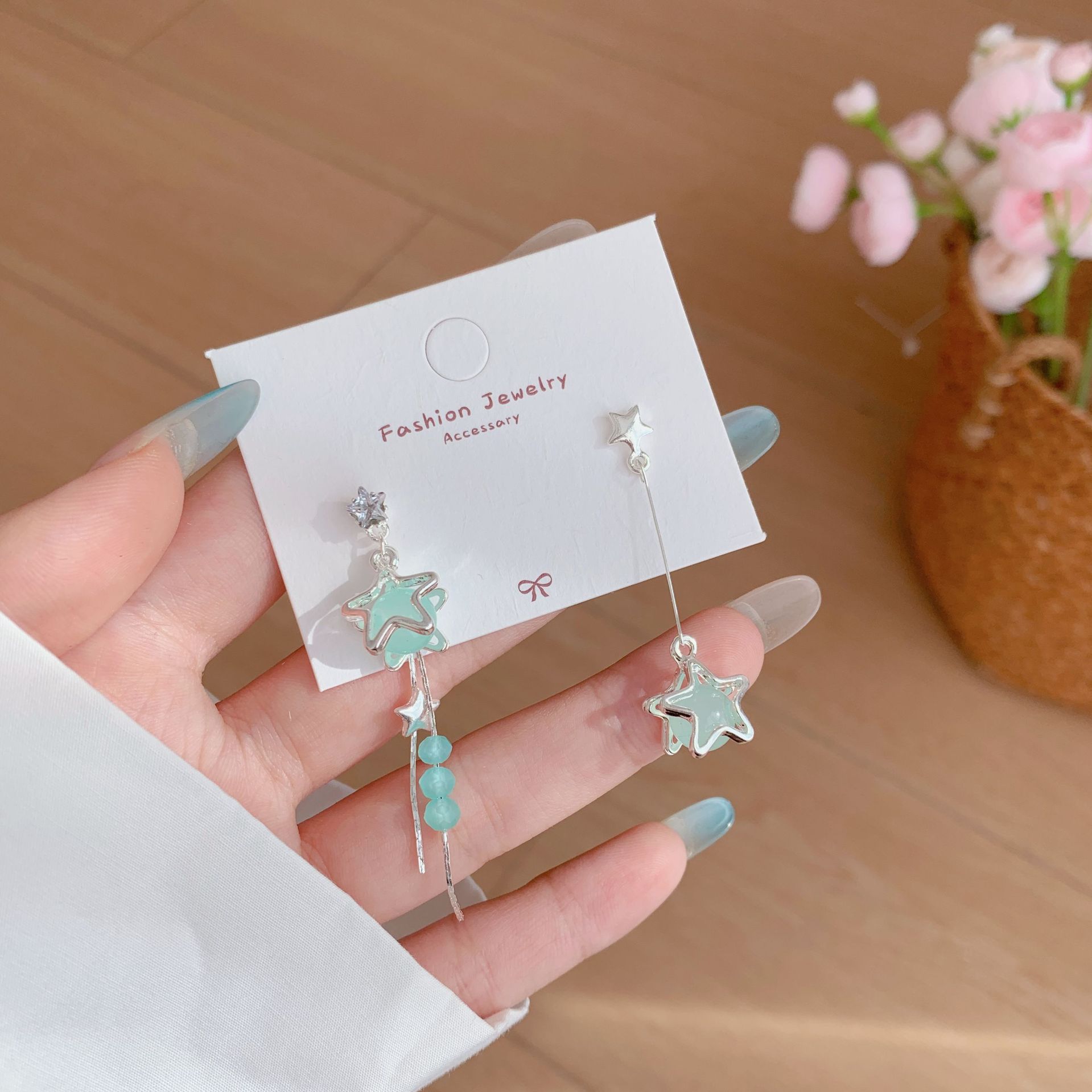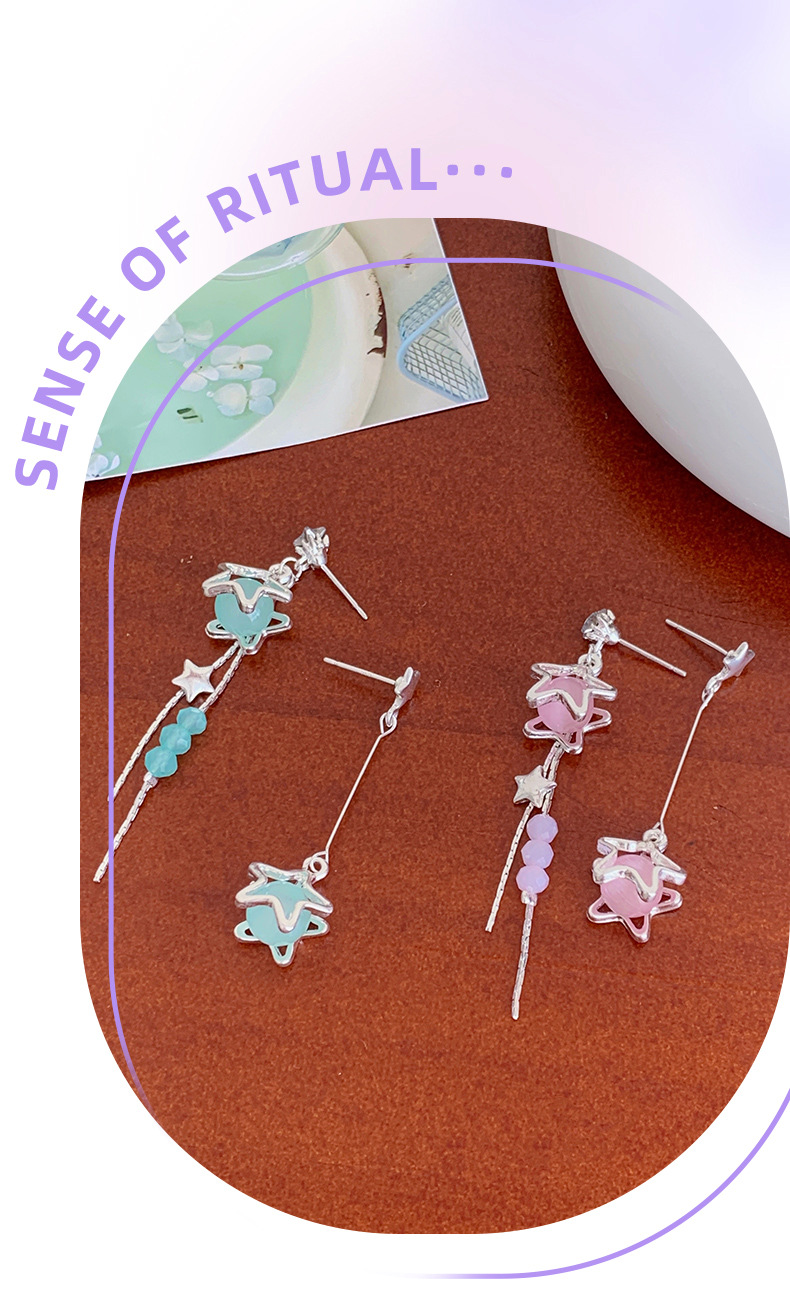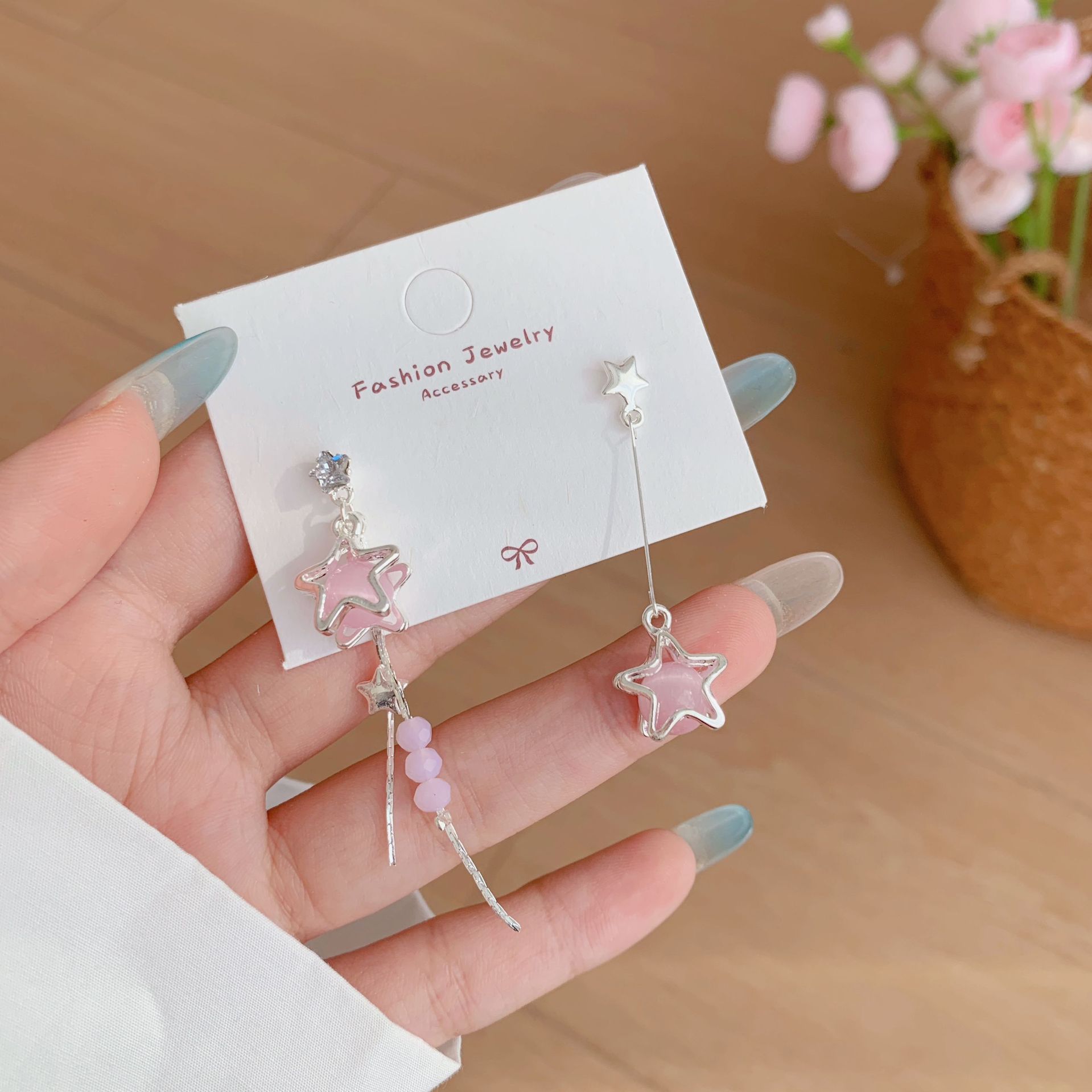 Pink Blue Star Handmade Beaded Earrings for Women Silver Needle Summer Super Fairy Exquisite Gentle Sweet Long Tassel Earrings
