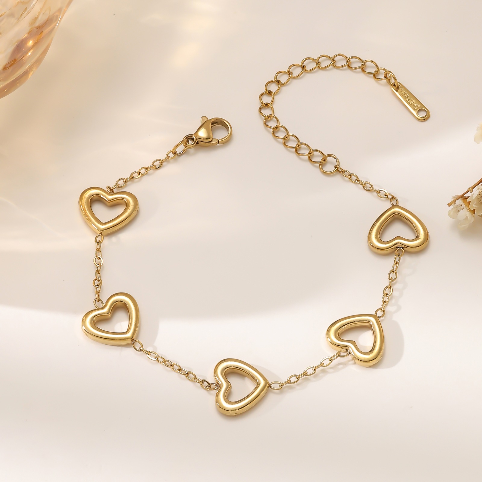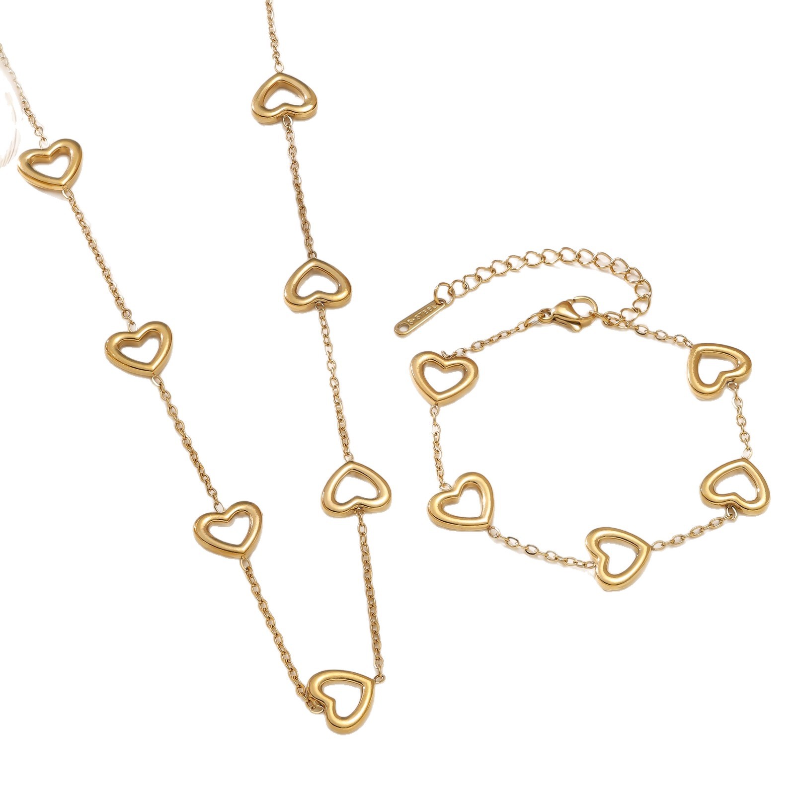Summer New Style Heart Titanium Steel Bracelet Necklace Women's Fashion Plated 18K Real Gold Non-Fading Stainless Steel Set Wholesale