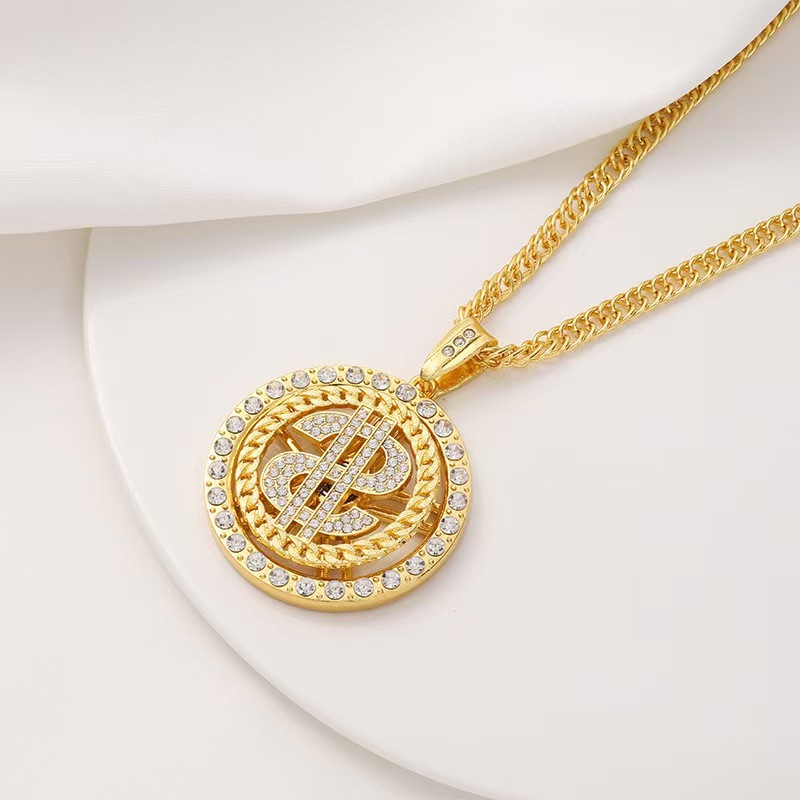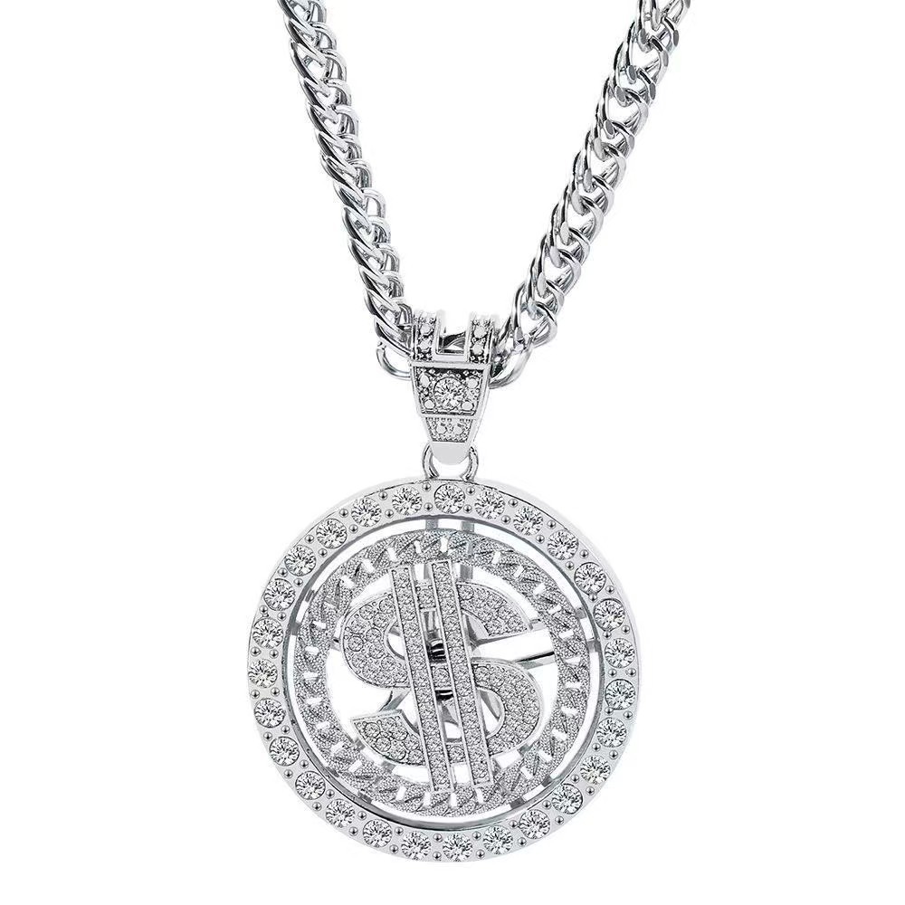 Exaggerated Hip-Hop Dollar Sign Necklace, Diamond-Encrusted Trendy Personalized Large Pendant, Metal Jewelry Accessories Wholesale Necklace