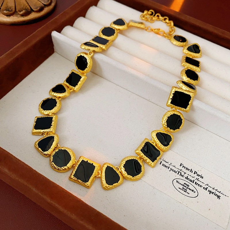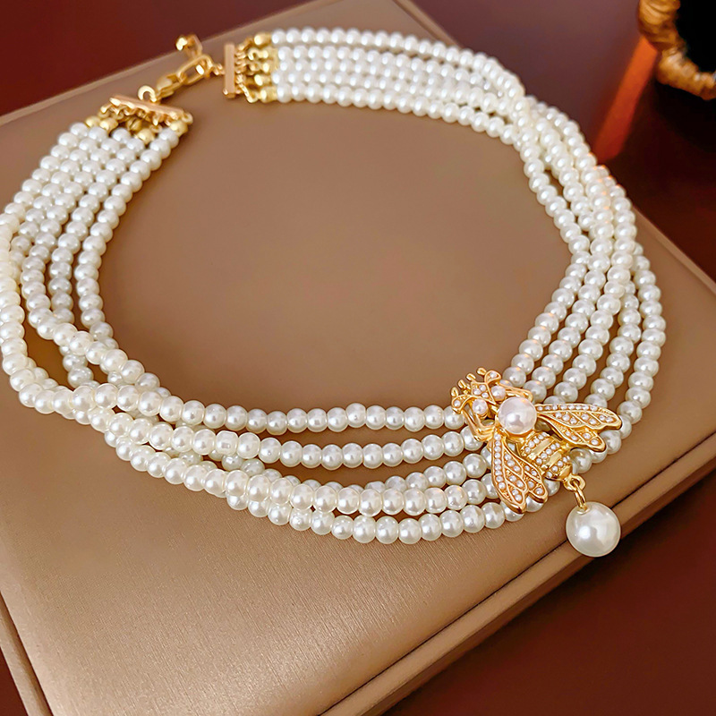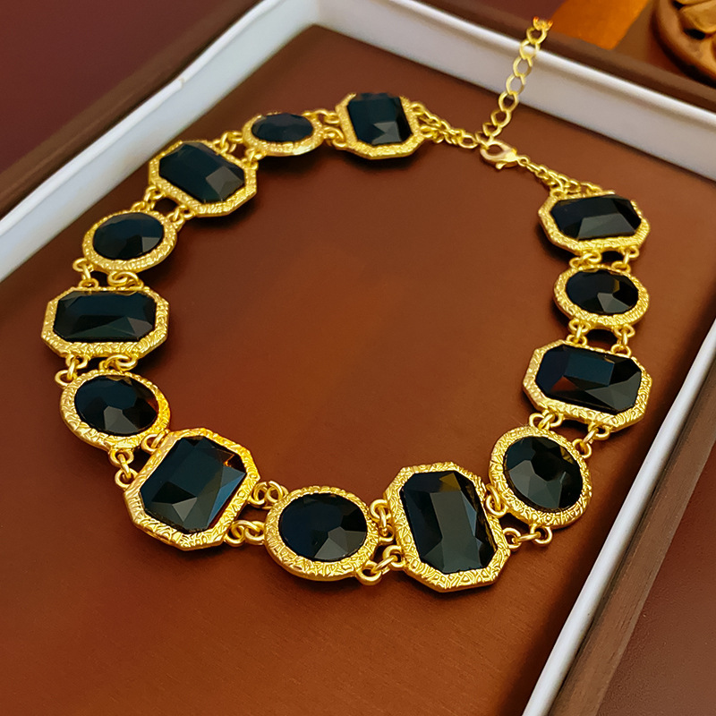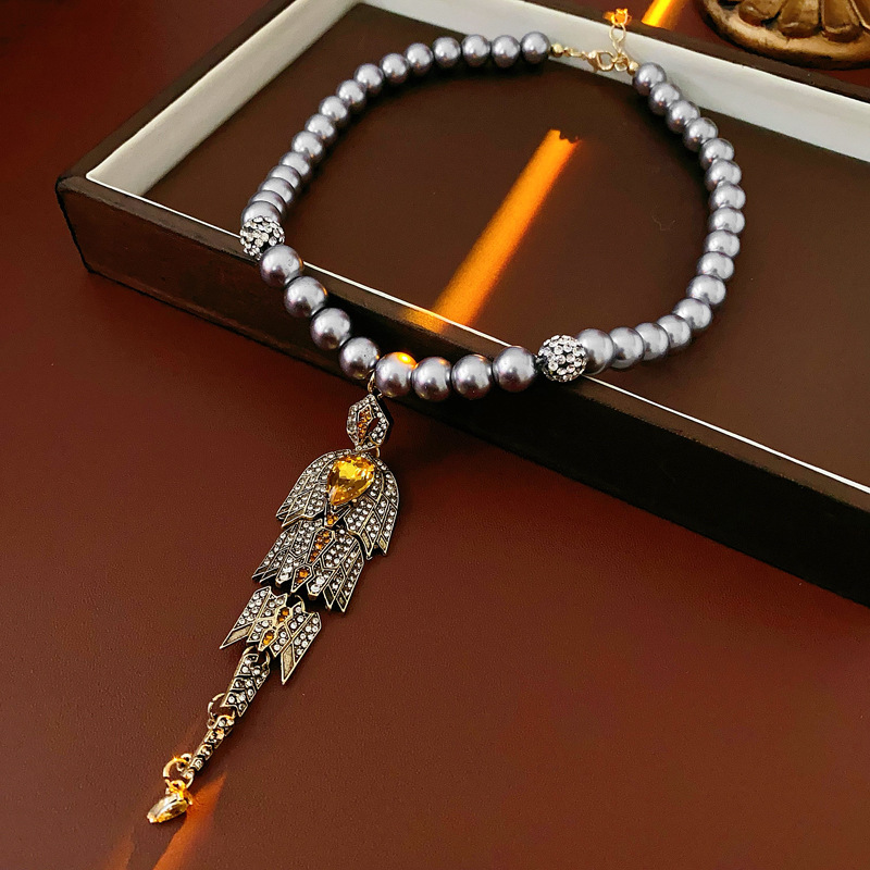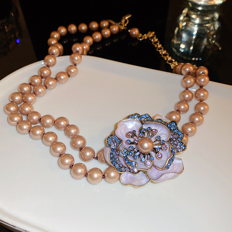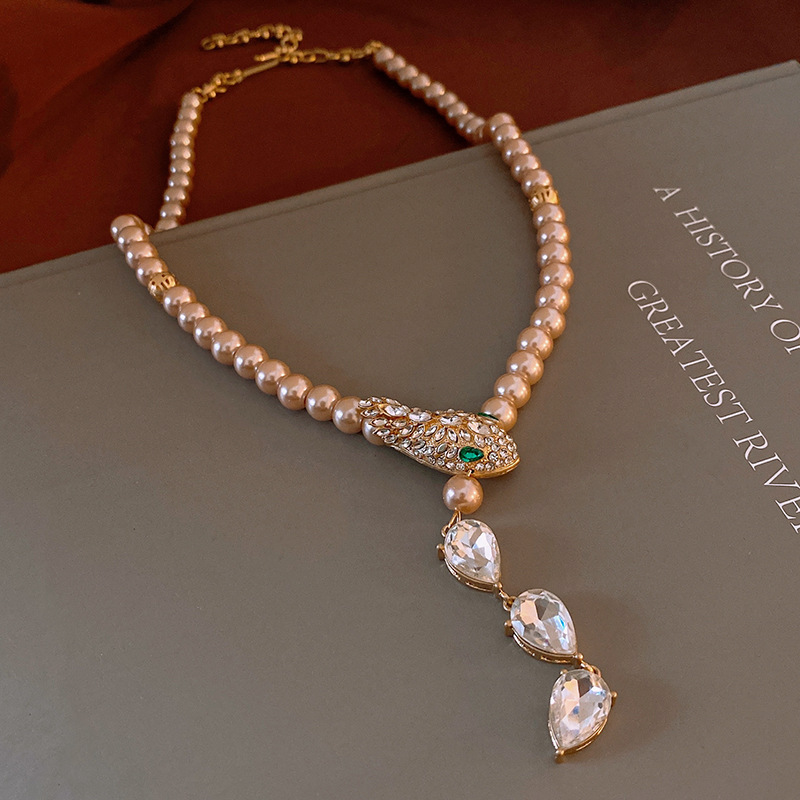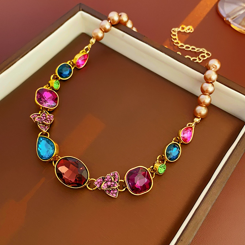 Color: 15#Necklace-gold-champagne-glass pearl 8mm