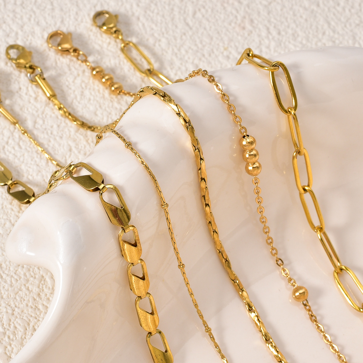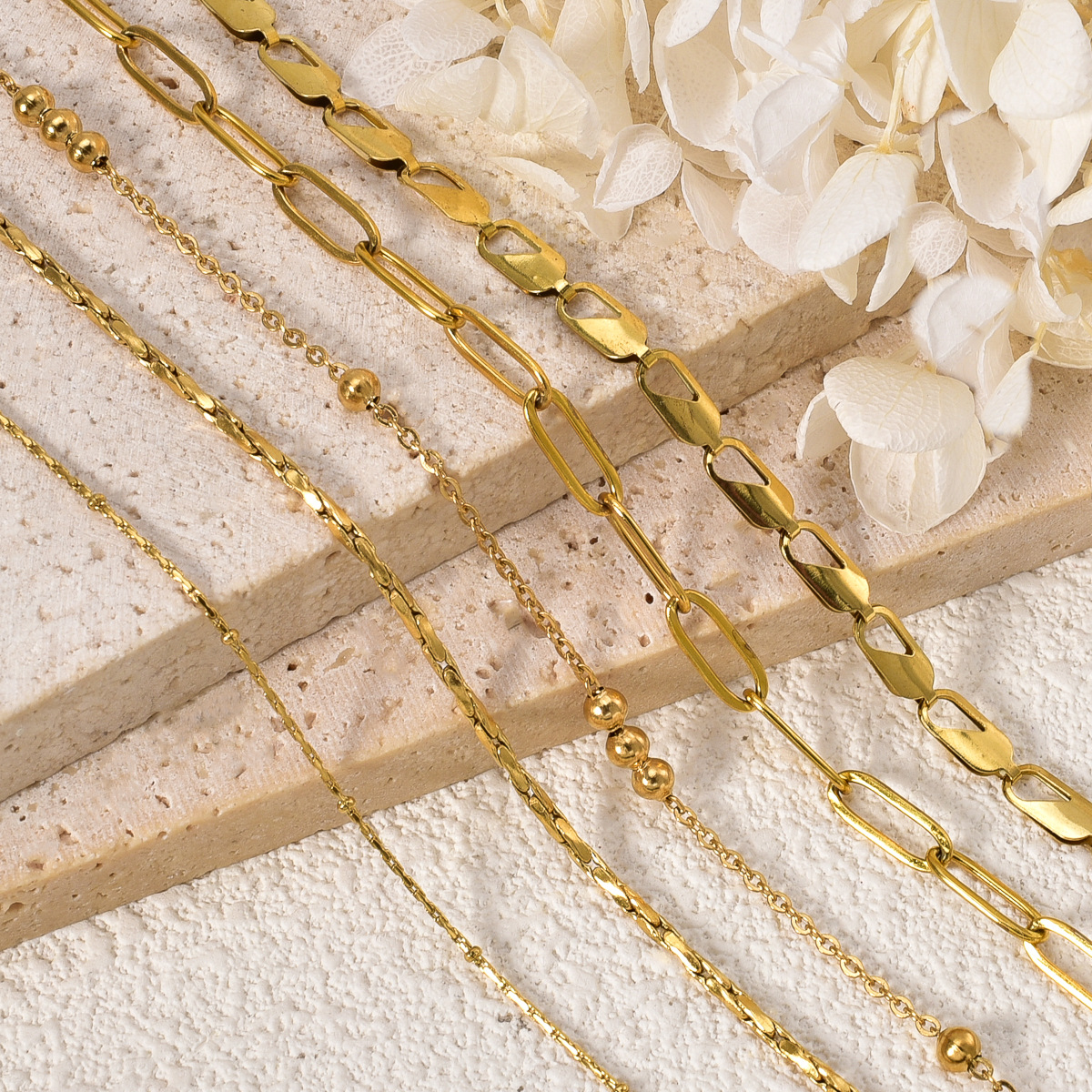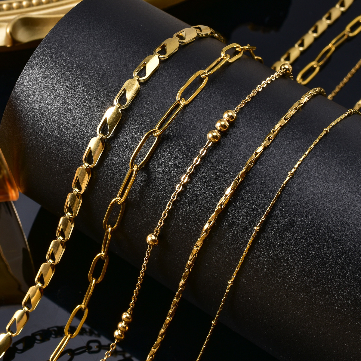 European and American Cross-Border Stacking Women's Waterproof Gold Necklace Fashionable Simple Daily Beach Vacation Style Necklace Wholesale