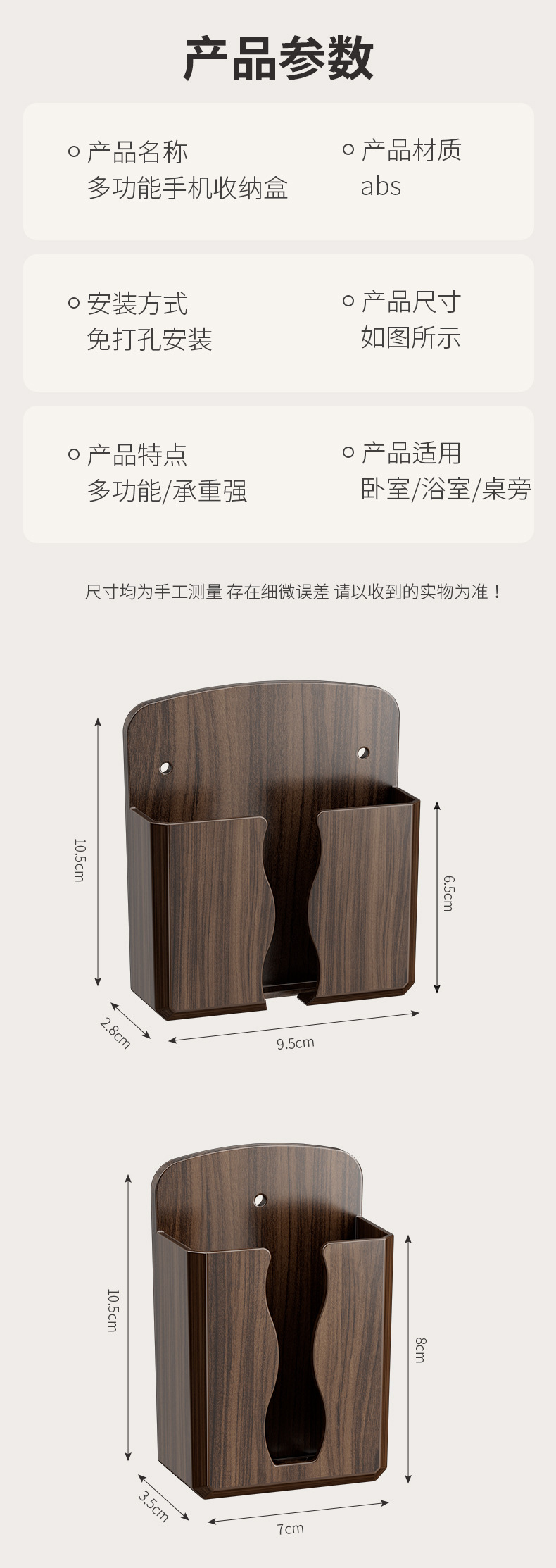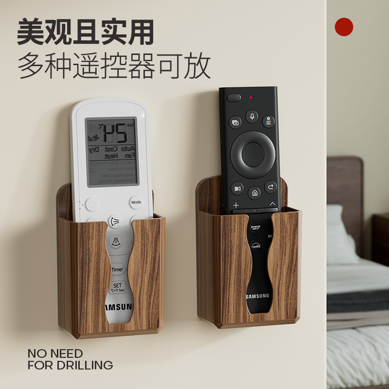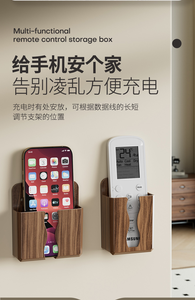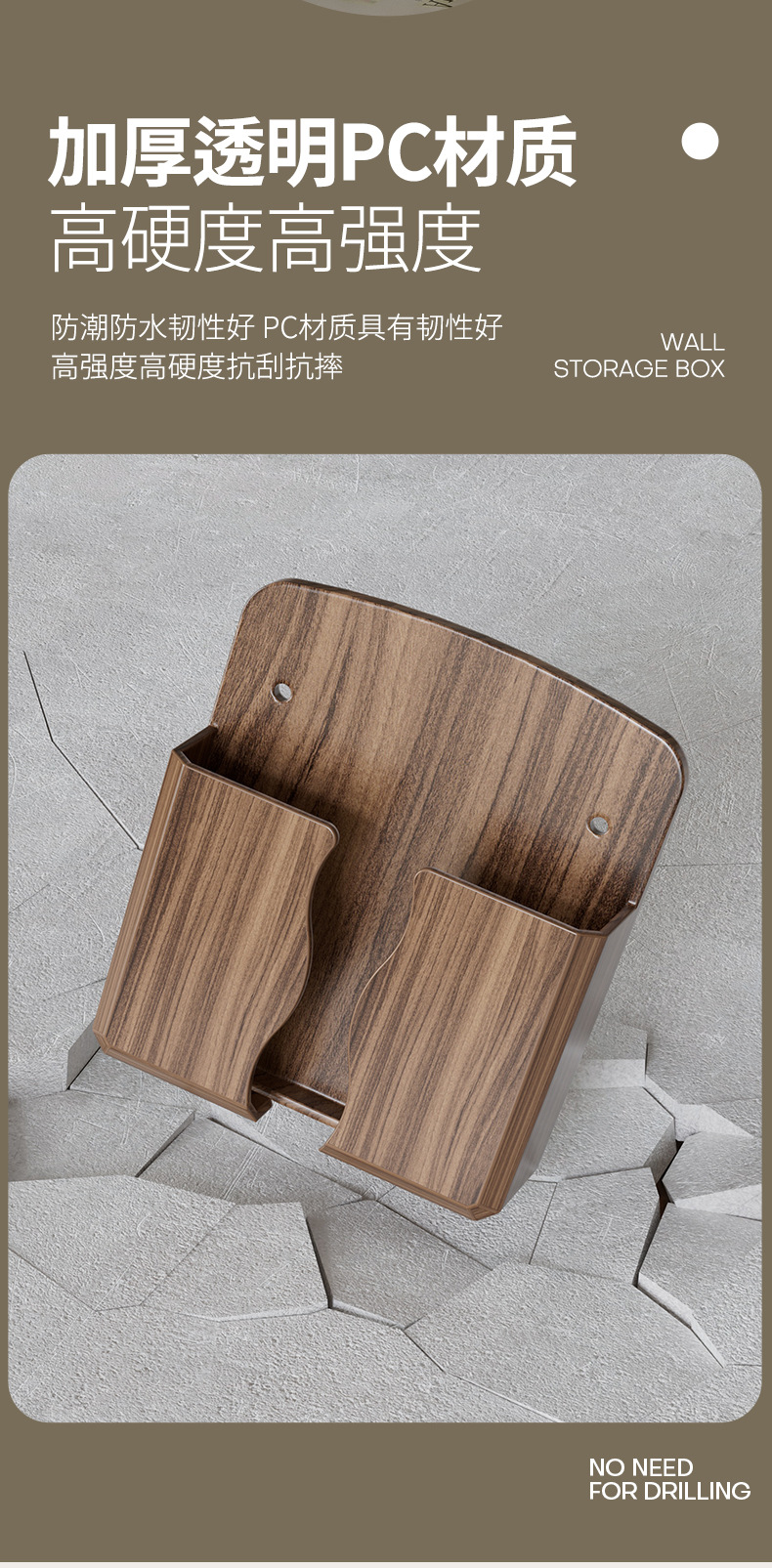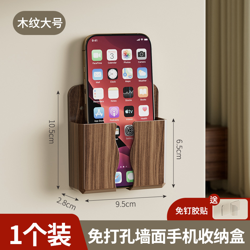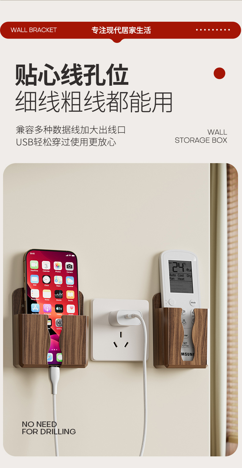 Hole-Free Wall-Mounted Mobile Phone Remote Control Storage Rack, Beautiful, Practical and Thoughtful Charging Port Peach Wood Grain Storage Rack Wholesale