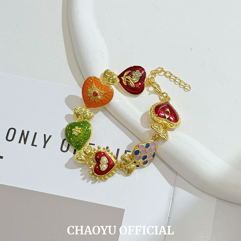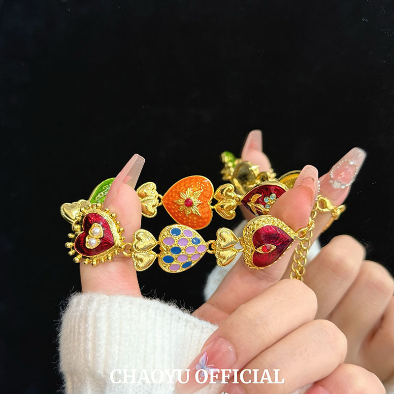 Medieval Style Love Bracelet, High-End Retro Colorful Love Stitching Bracelet, Niche Unique Design Women's Bracelet