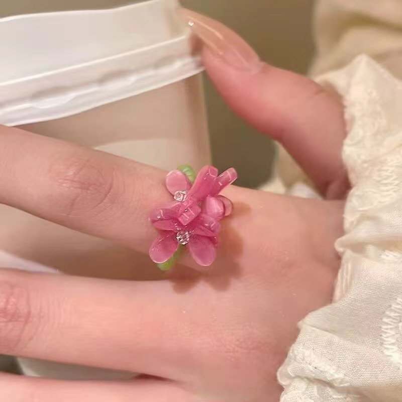 Early Spring Tone ~ Dopamine Colorful Hydrangea Flower Ring for Women, Seaside Vacation Style Index Finger Ring, Girly Heart Ring