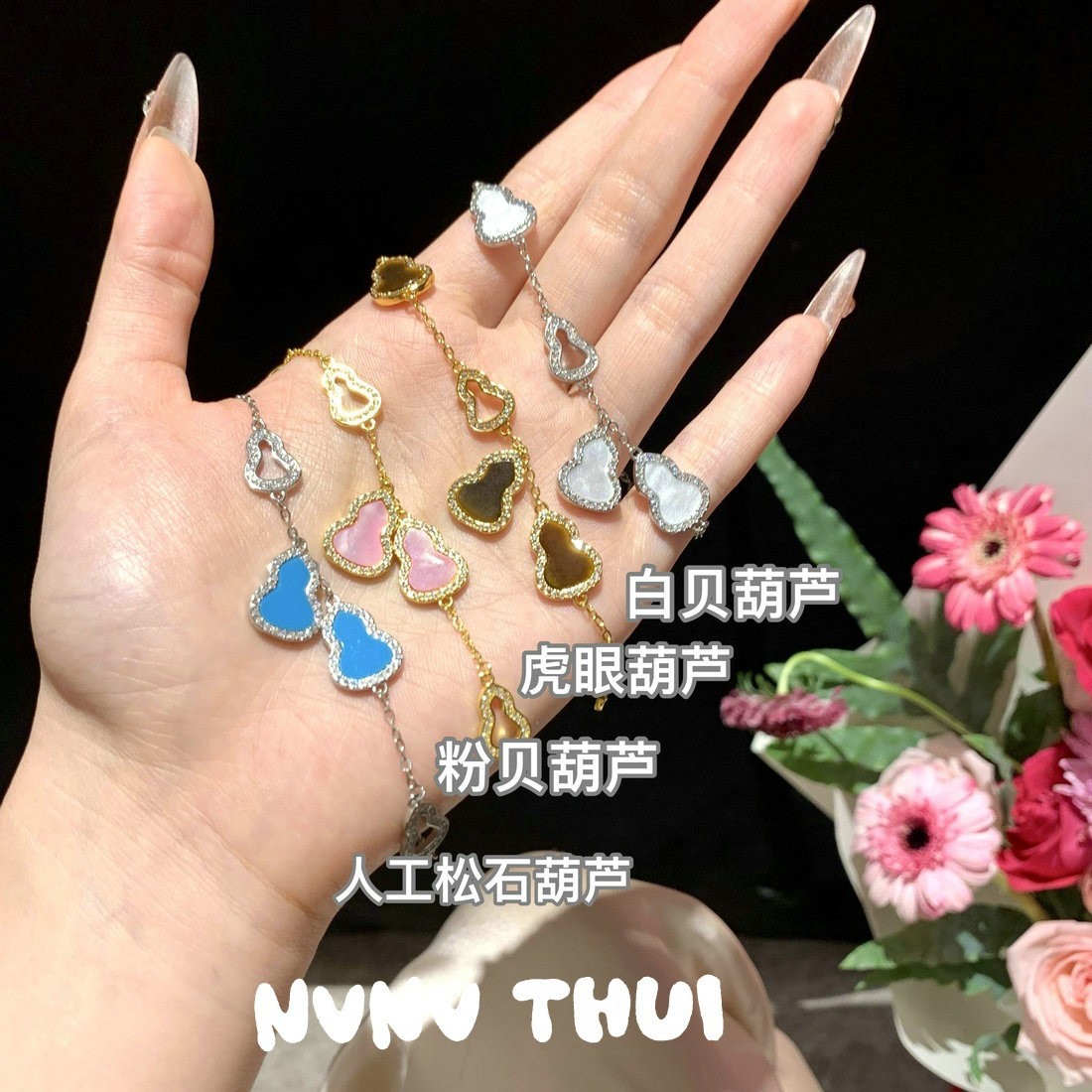 Color: 766hul [gold] artificial pink mother-of-pearl zircon gourd bracelet ~ no box