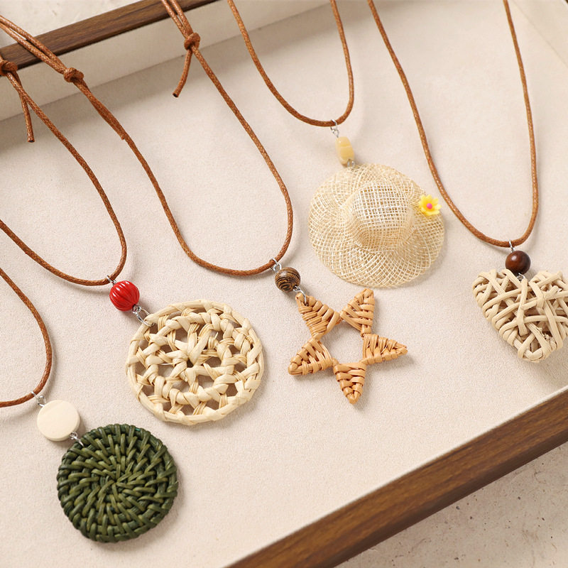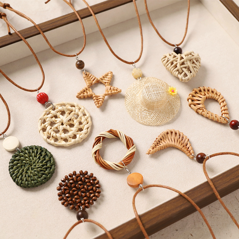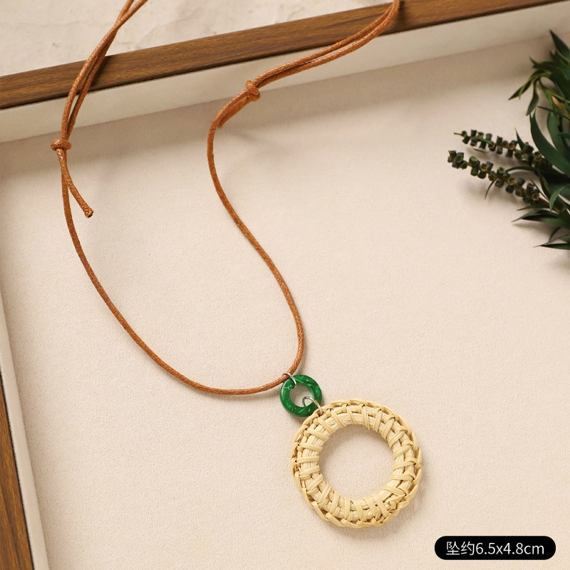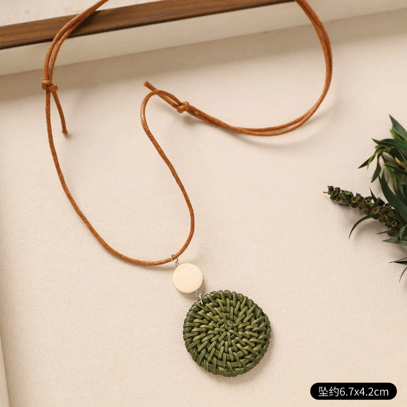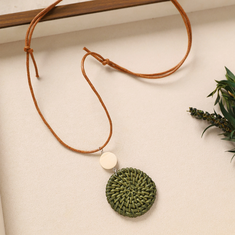 Color: 6-rattan necklace (green rattan disc)