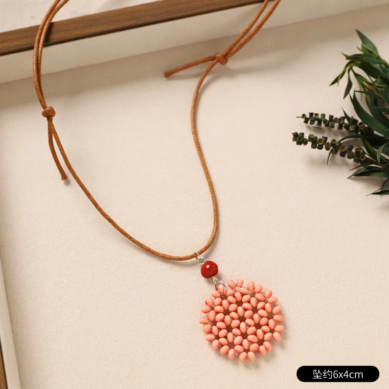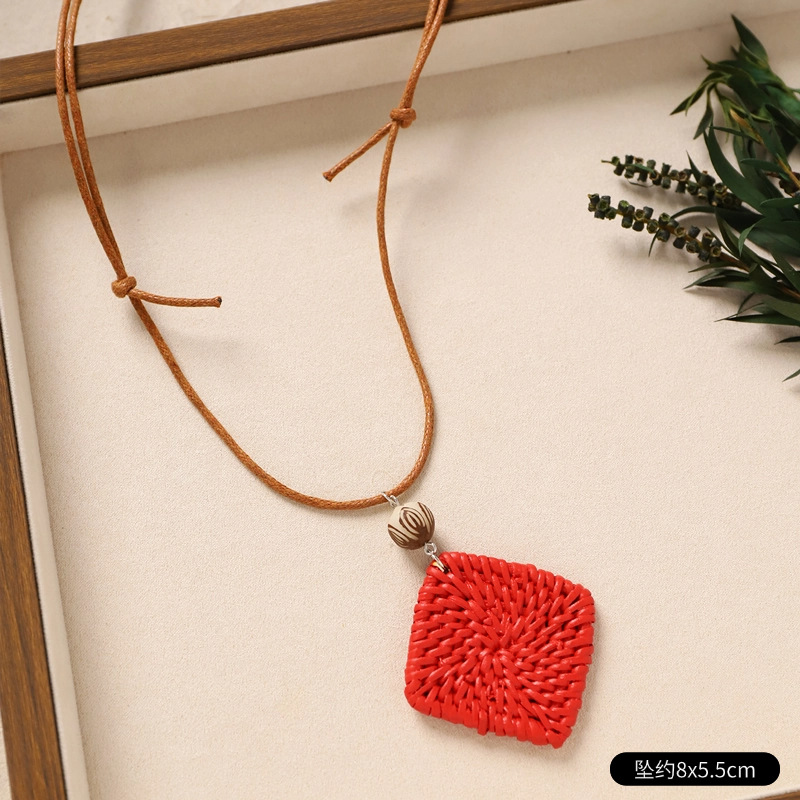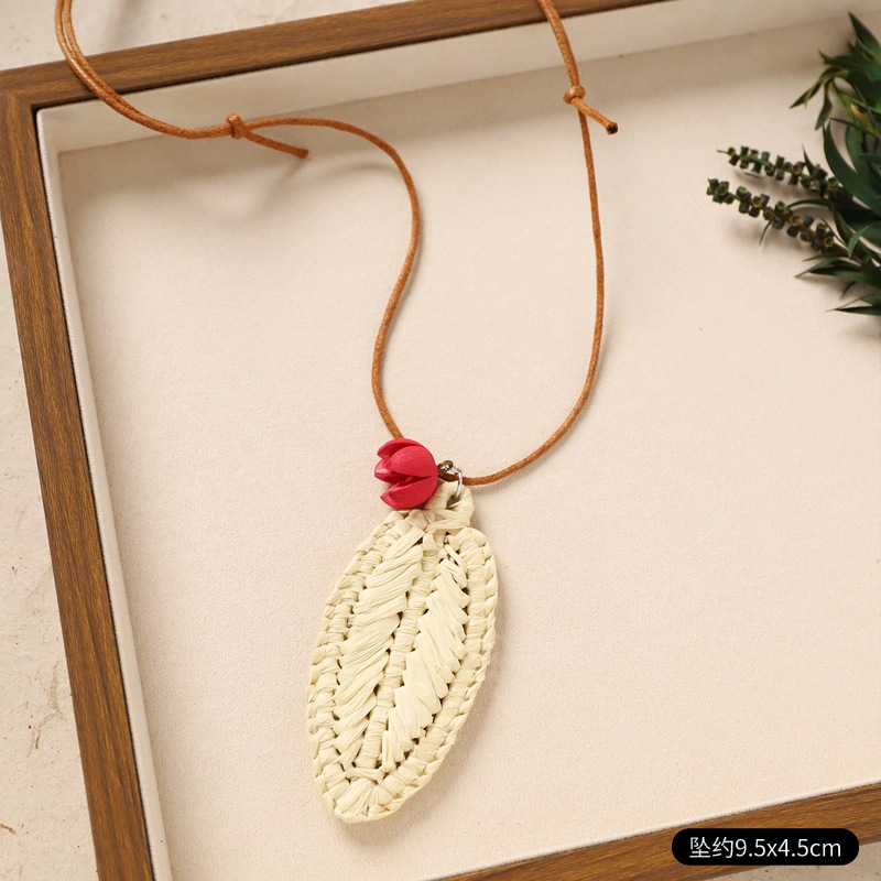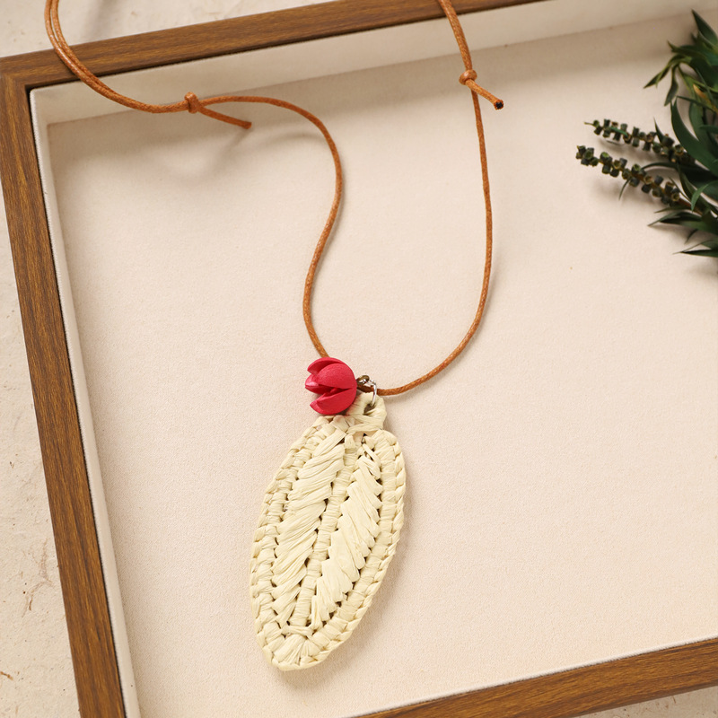 Color: 29-rattan necklace (red smiling vine leaves)