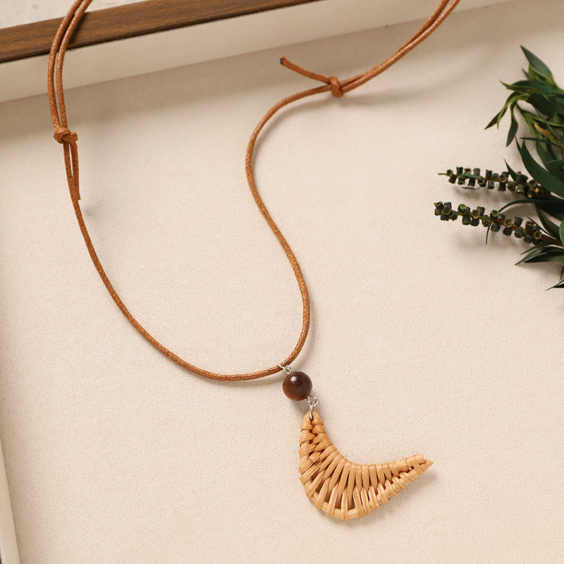 Color: 4-rattan necklace (brown moon)