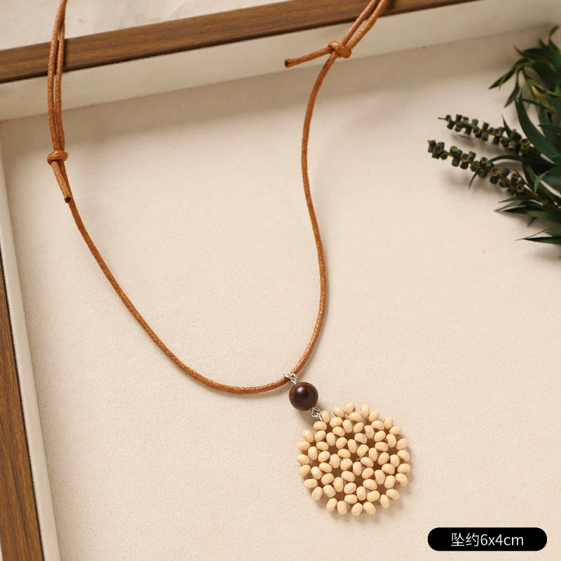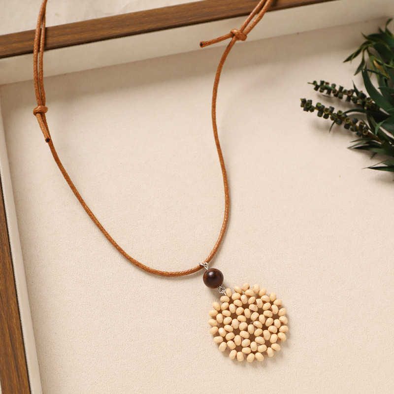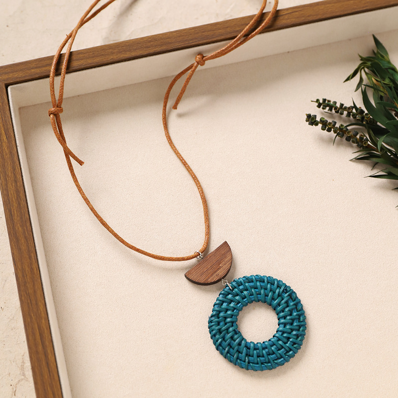 Color: 23-rattan necklace (brown wood blue circle)