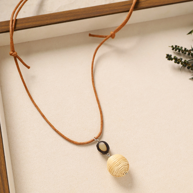 Color: 3-rattan necklace (brown and white wrapped around round)