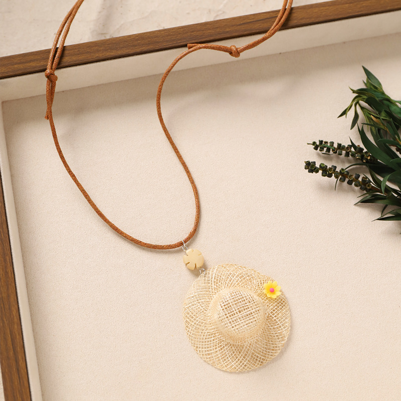 Color: 1-rattan necklace (flower field straw hat)