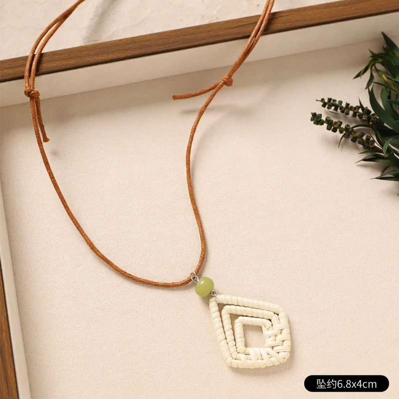 Color: 31-rattan necklace (green diamond shape)
