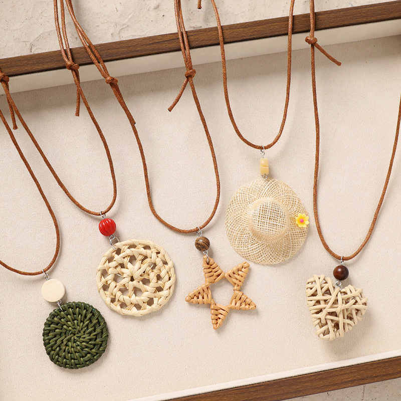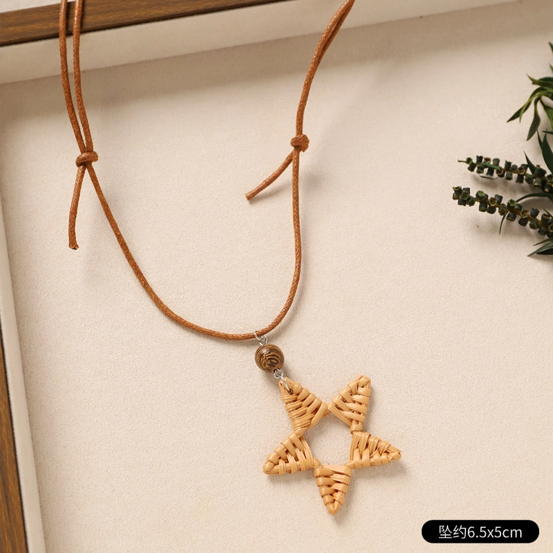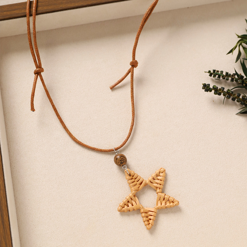 Color: 2-rattan necklace (brown five-pointed star)