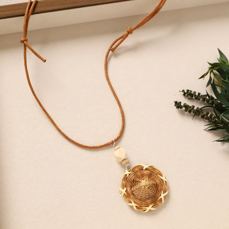 Color: 19-rattan necklace (straw sunflower)