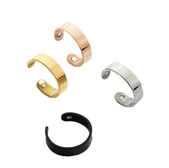 Amazon's Popular Stainless Steel Magnetic Ring Anti-Snoring Open Ring Single and Double Magnet Decompression Ring Titanium Steel Jewelry