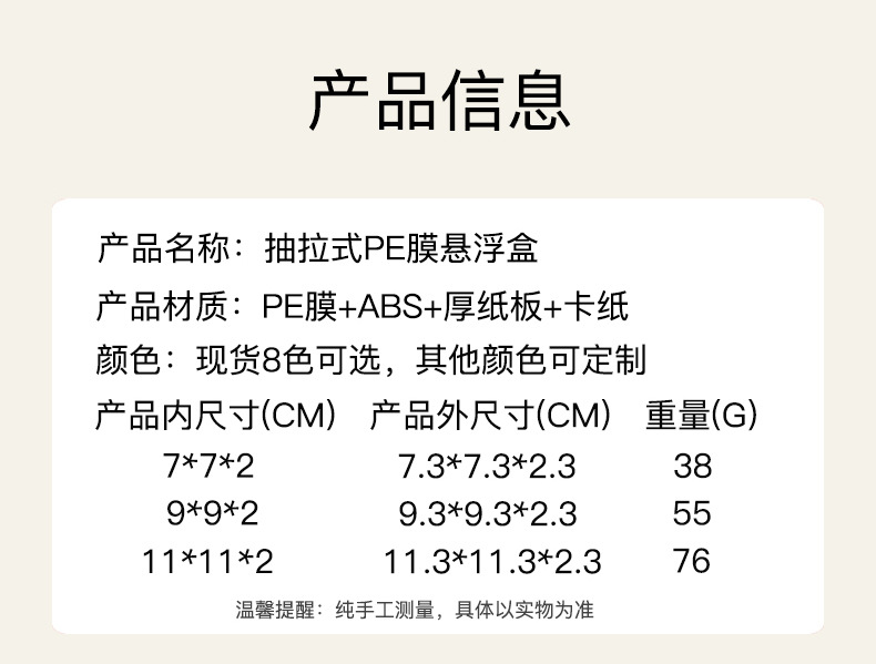 Specifications and models: Black cardboard + black inner box; 7*7*2cm