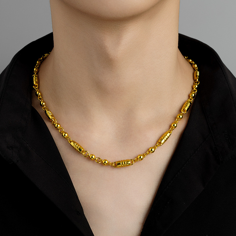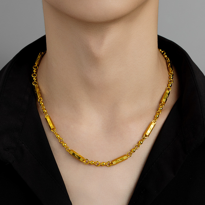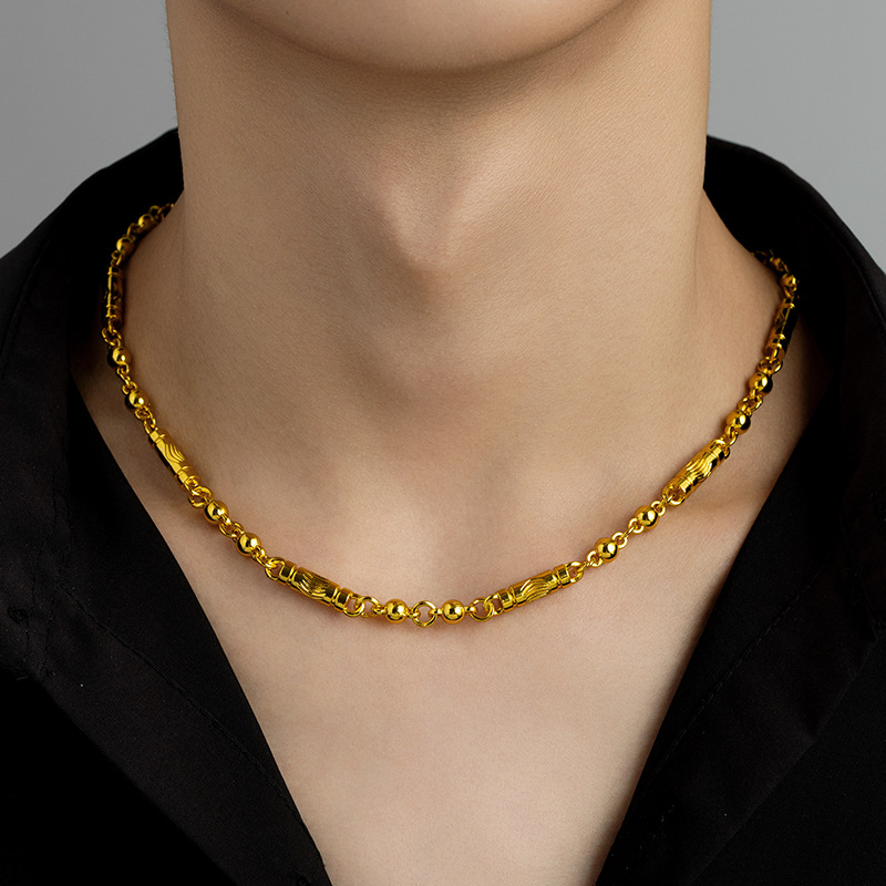 Bamboo Buddha Bead Chain Men's Domineering Jewelry Horsewhip Necklace Vietnam Men's Imitation Gold Necklace
