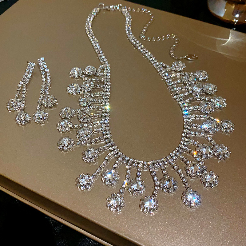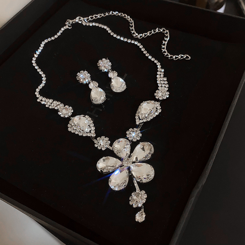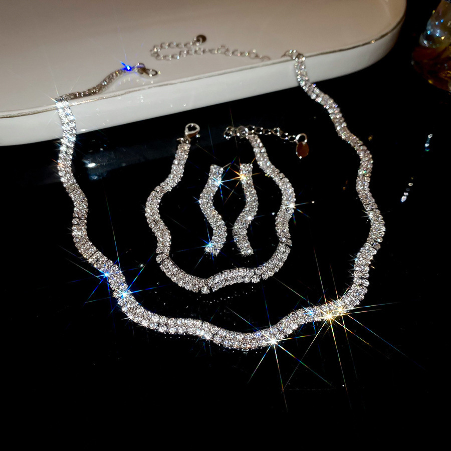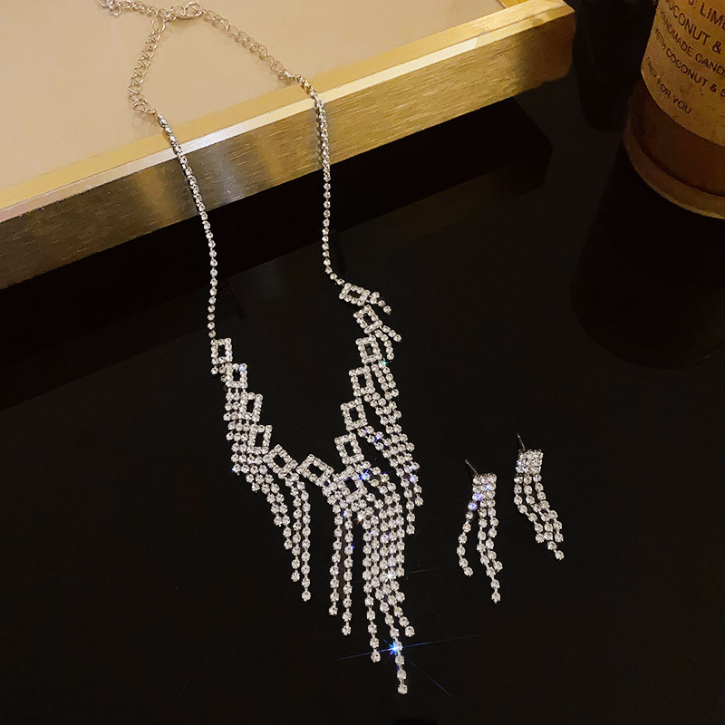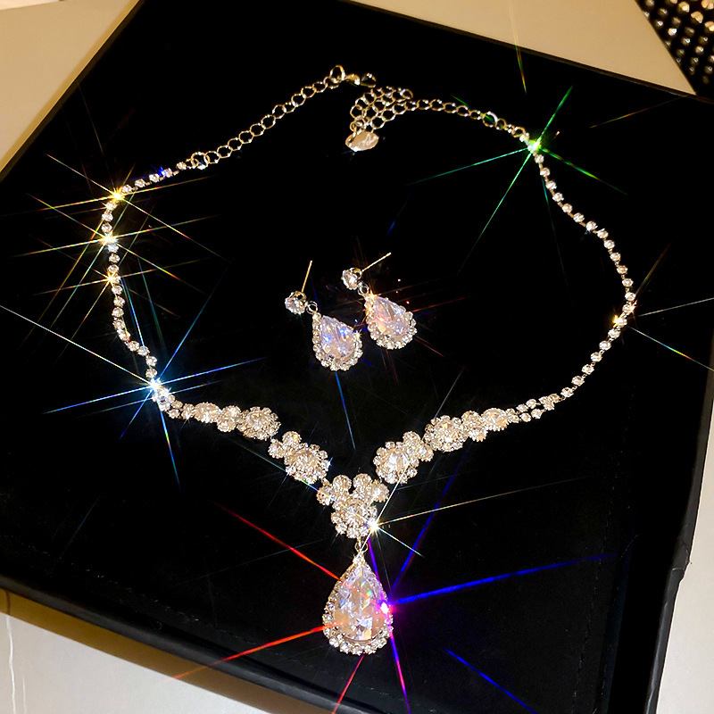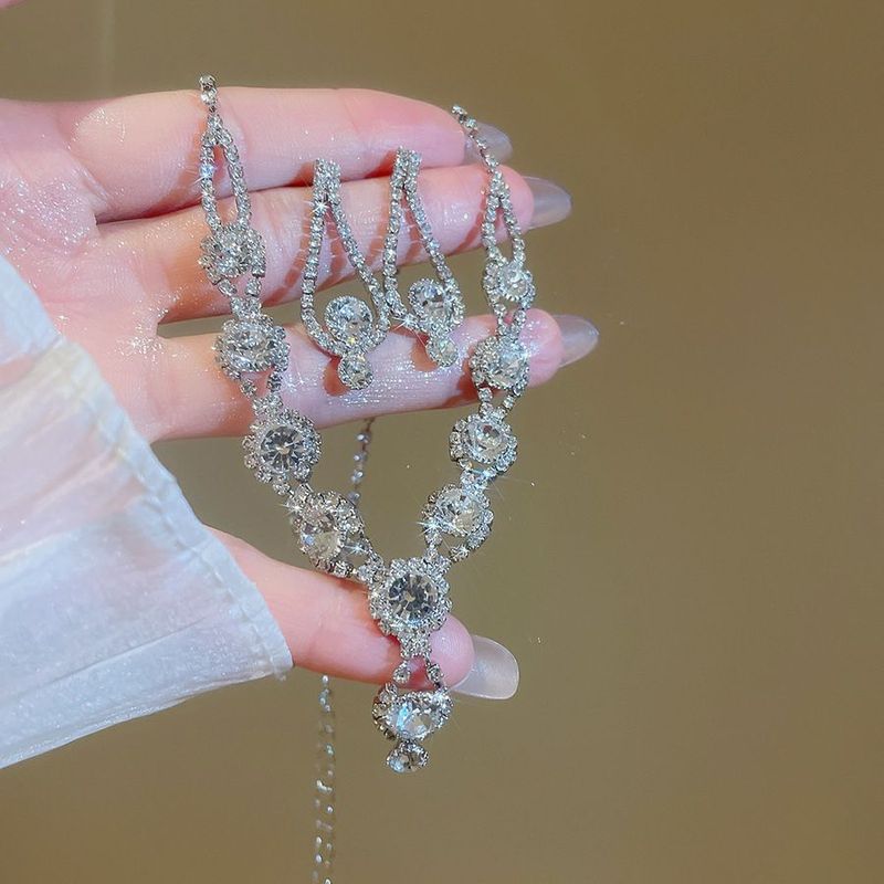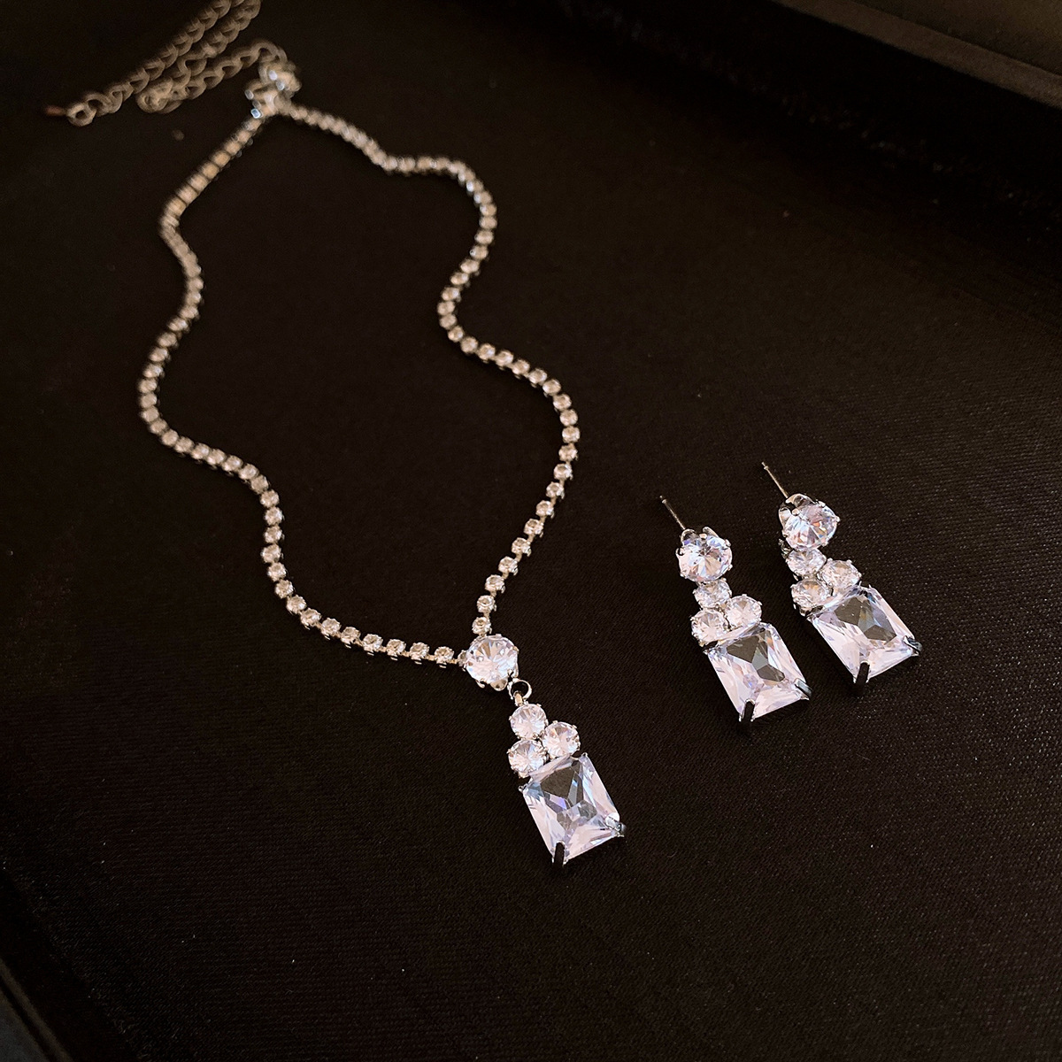 Color: 73#Earrings and necklace-silver (three-piece set)