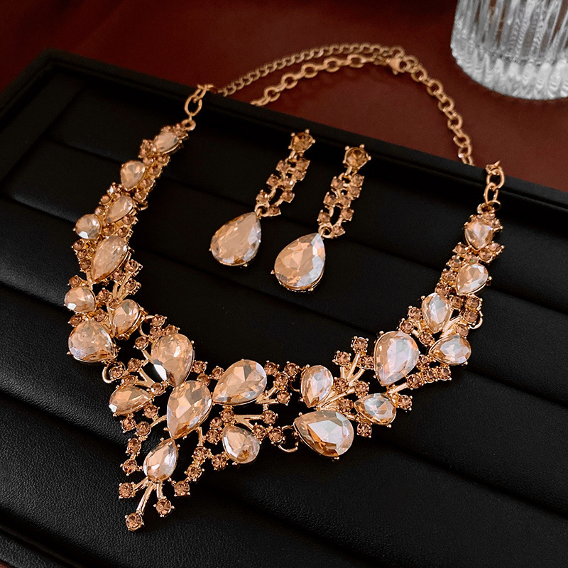 Color: 20#Earrings and necklace - champagne color (set of two)