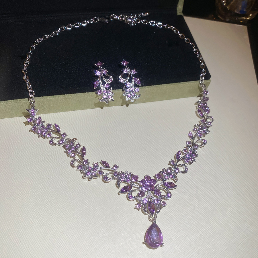 Color: 76#Earrings necklace-silver-purple (set of two)