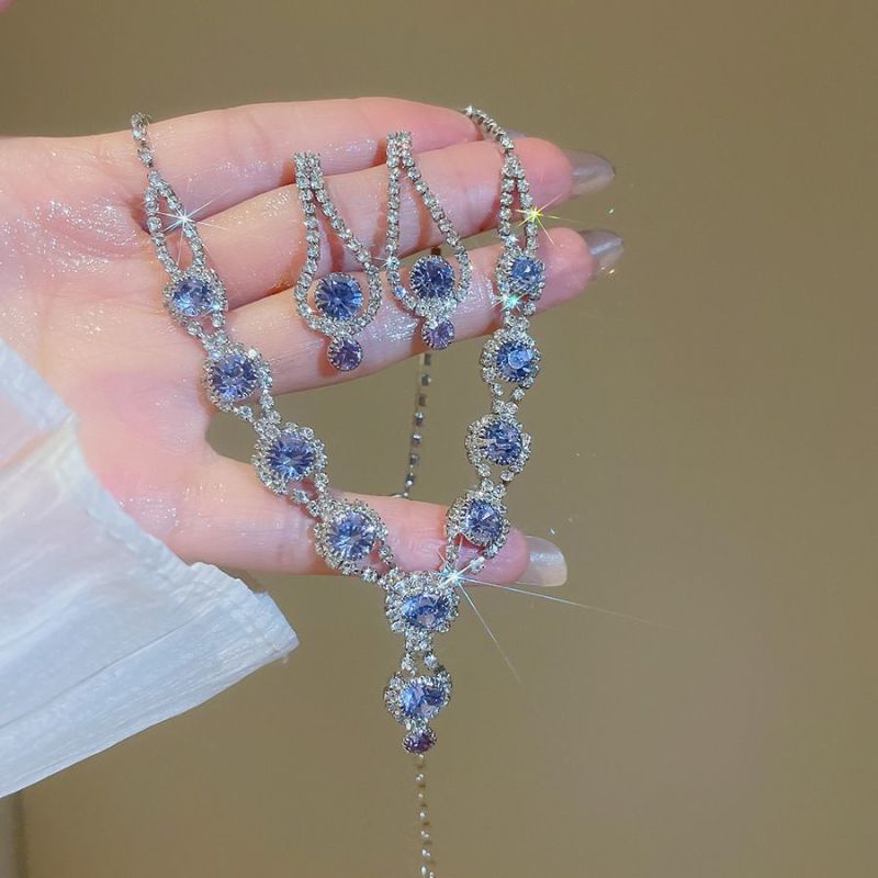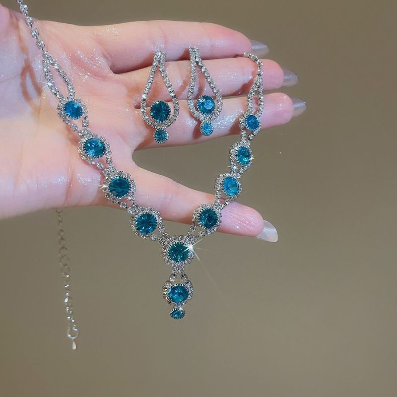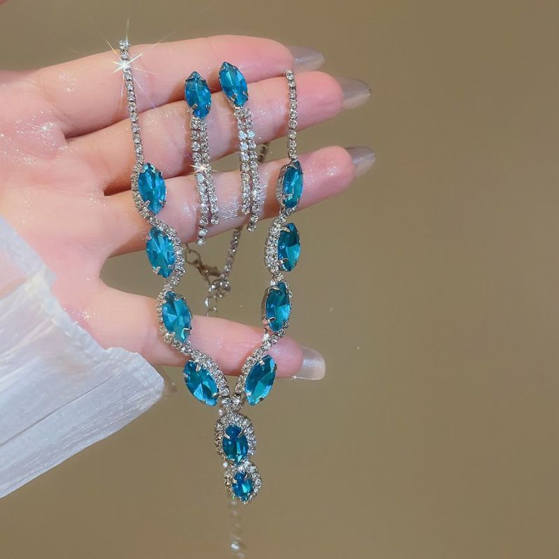 Color: 66#Earrings and necklace-silver-blue (three-piece set)