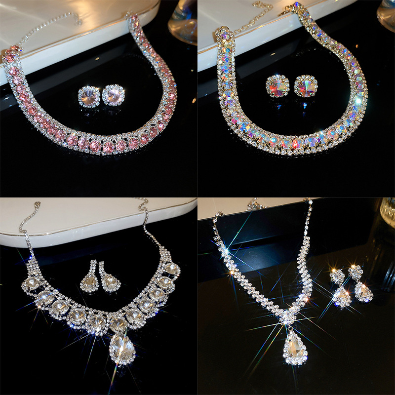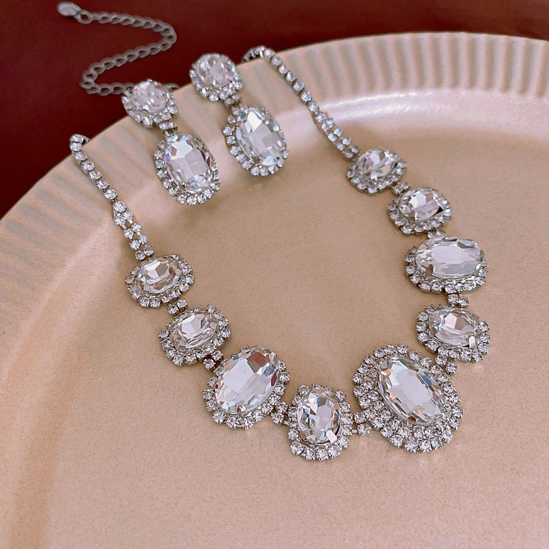 Color: 13#Earrings and necklace-silver-ab color (set of two)