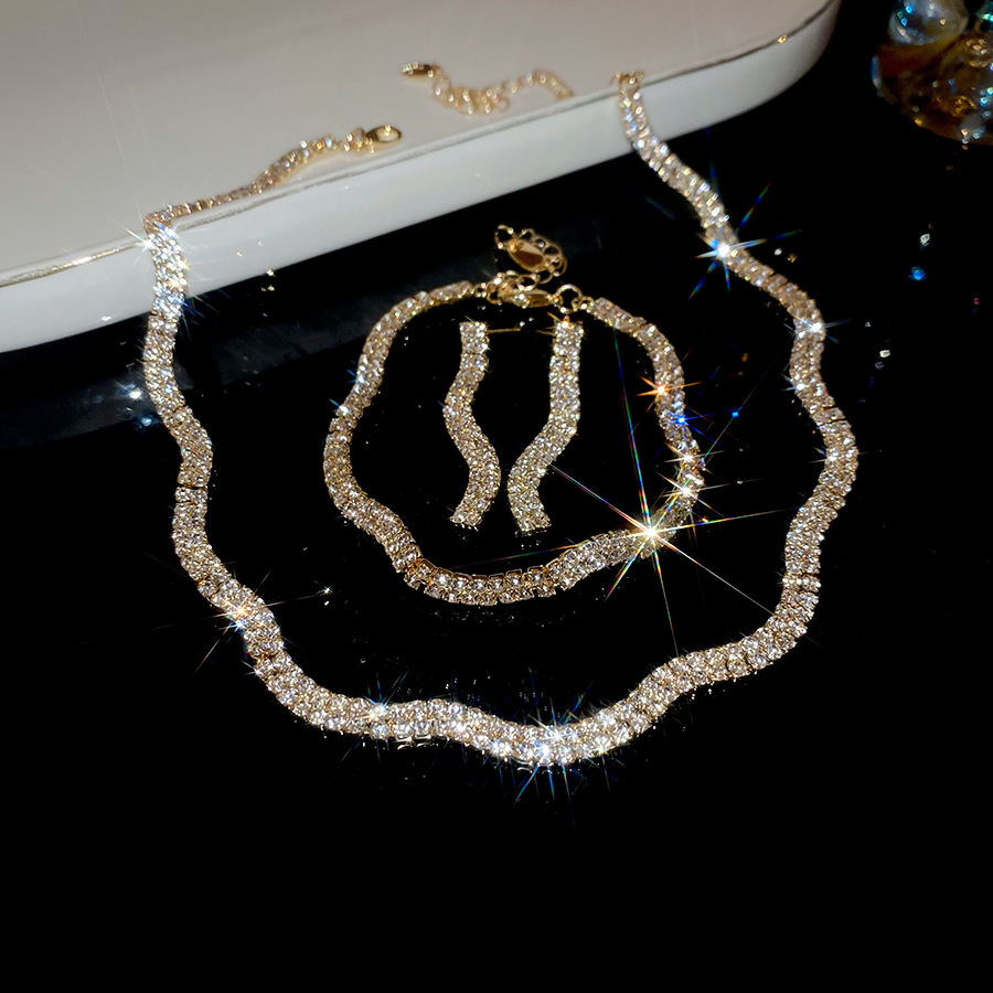 Color: 9#Earrings and necklace-regular-gold-ab color (set of two)