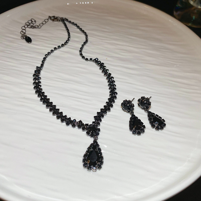 Color: 39#Earrings and necklace-gun black-water drops (set of two)