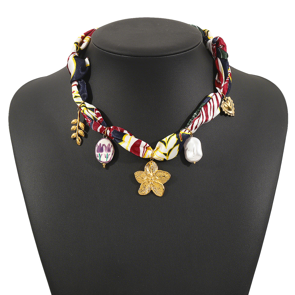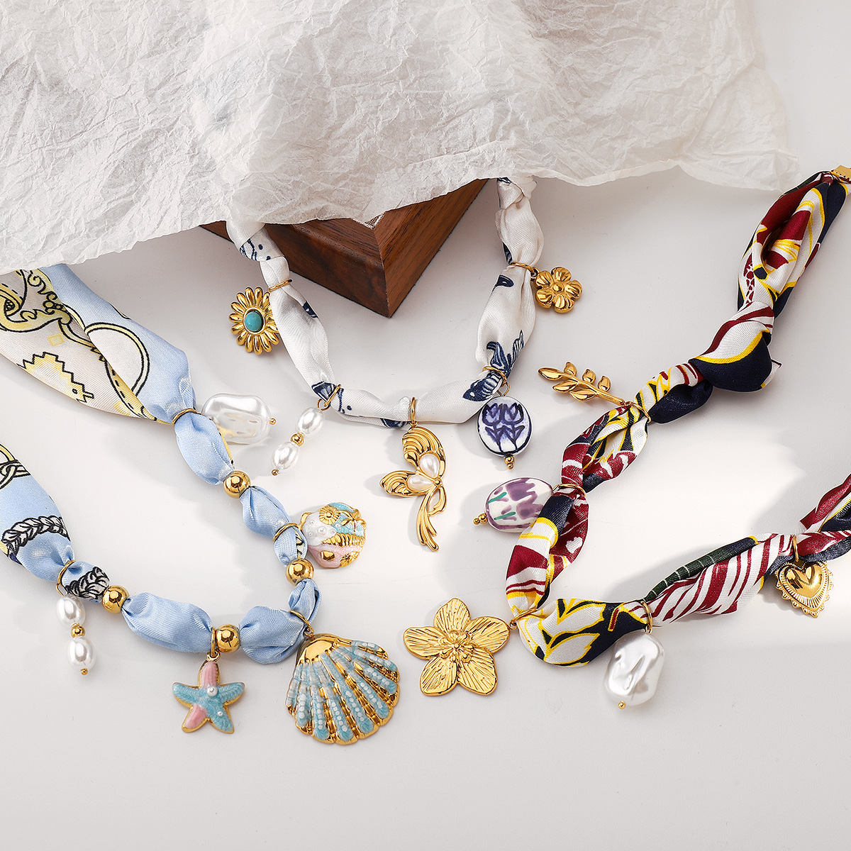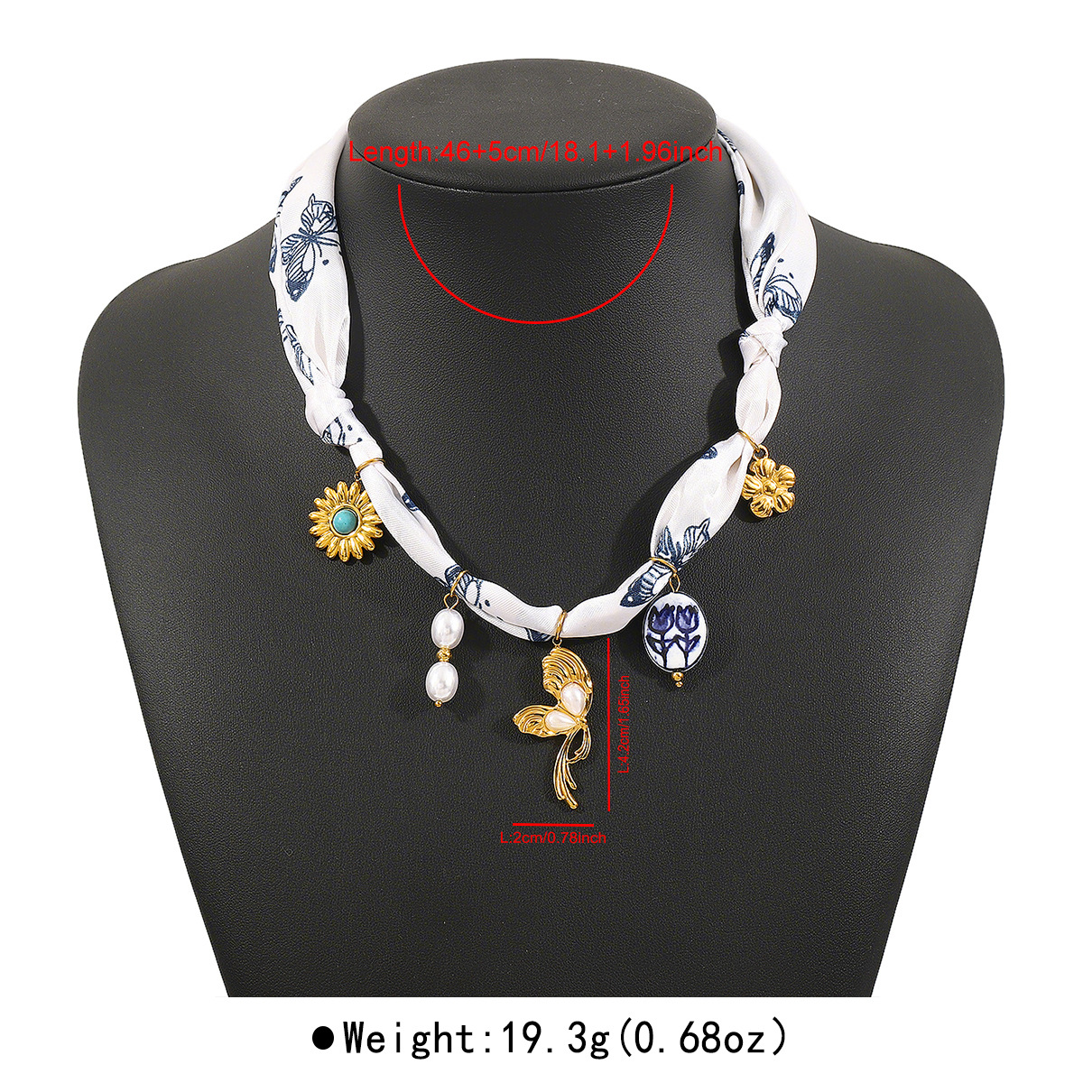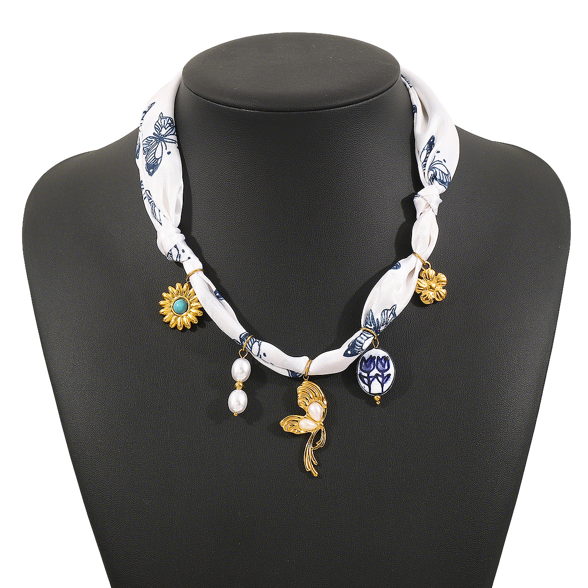 ZN0646跨境花朵陶瓷吊坠丝带项链气质百搭文艺清新小众不锈钢颈链