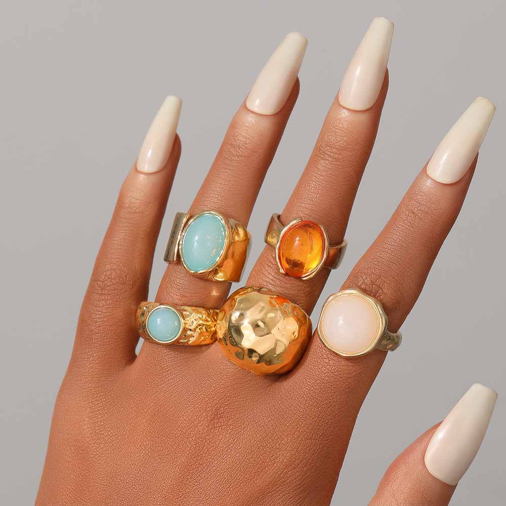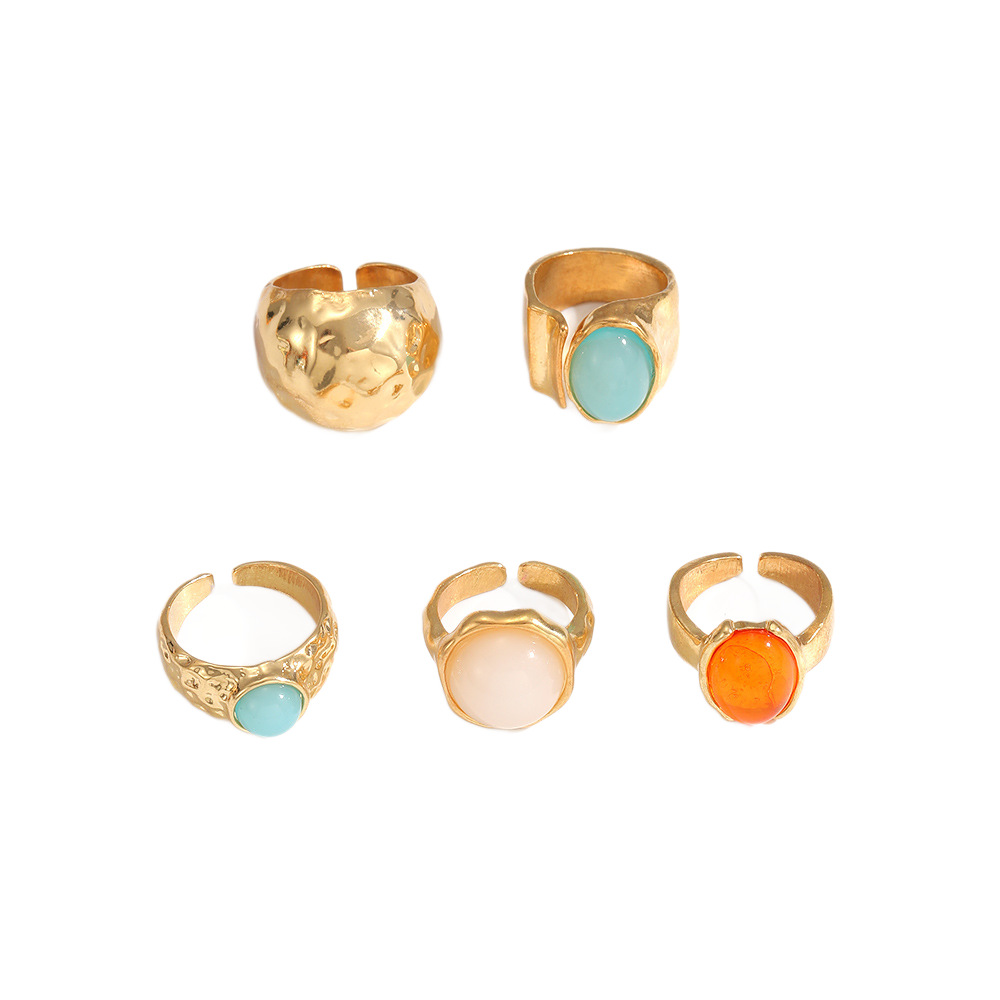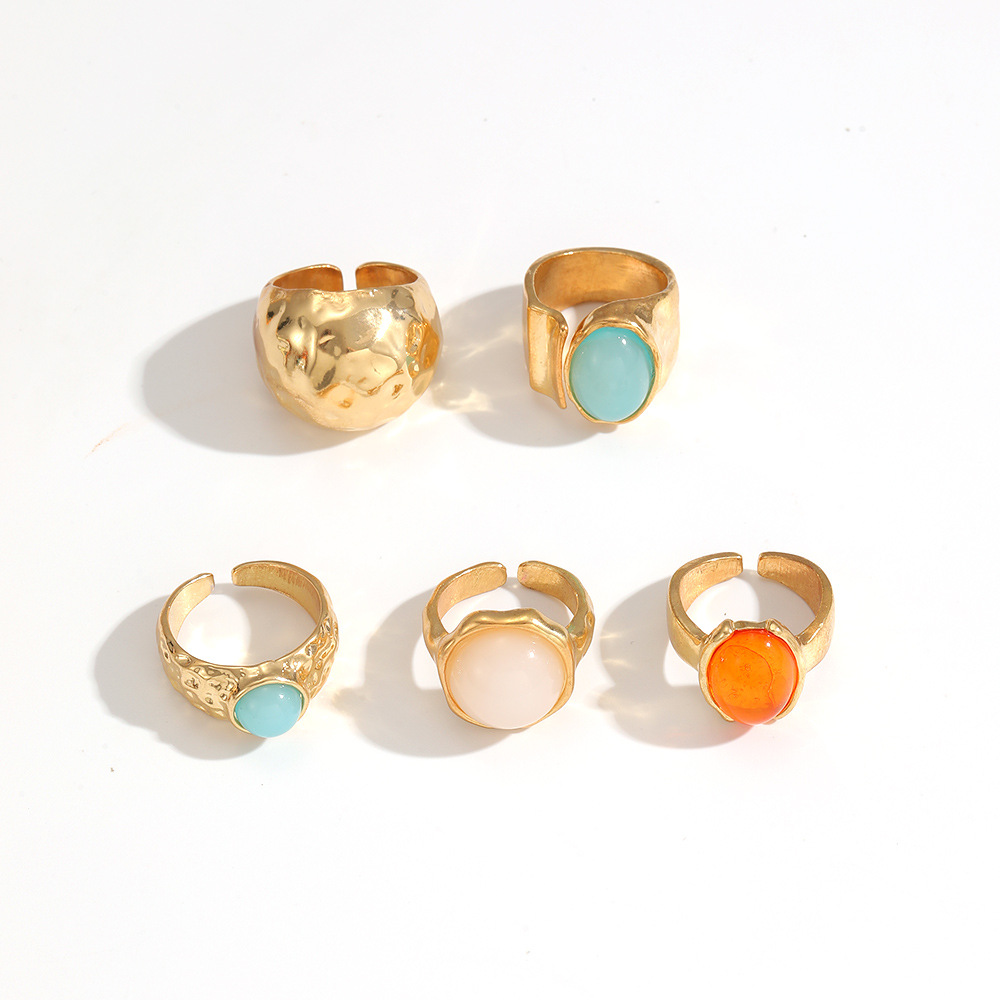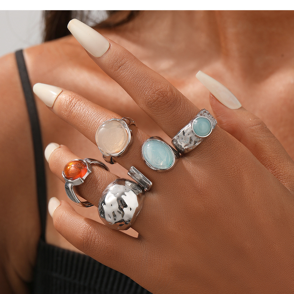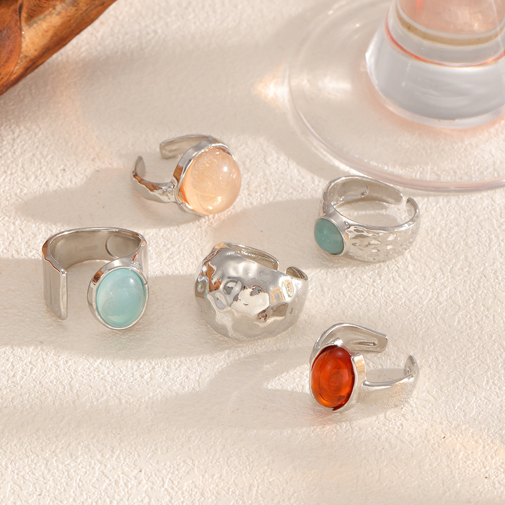 European and American Cross-Border Ring for Women Ins Fashion Micro-Embedded Acrylic Ring High-Value Opening Asymmetrical Hammered Ring