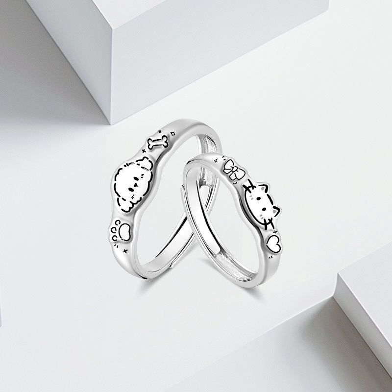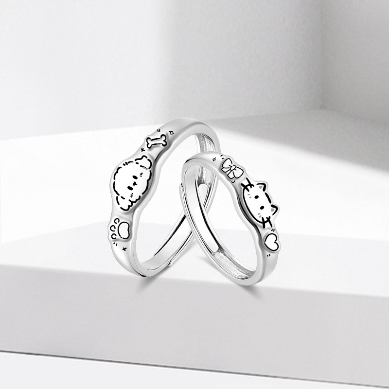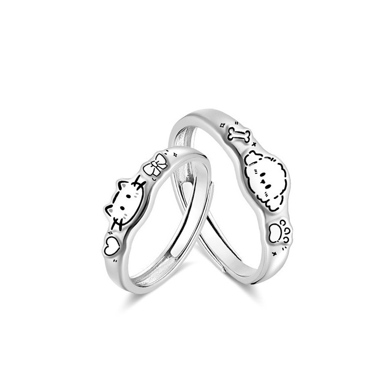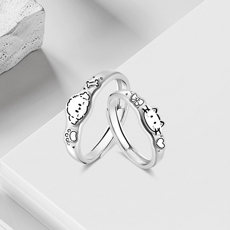S999 Sterling Silver Original Cute Pet Series Couple Ring Forest Style Fresh Creative Student Pair Ring Jewelry Wholesale
