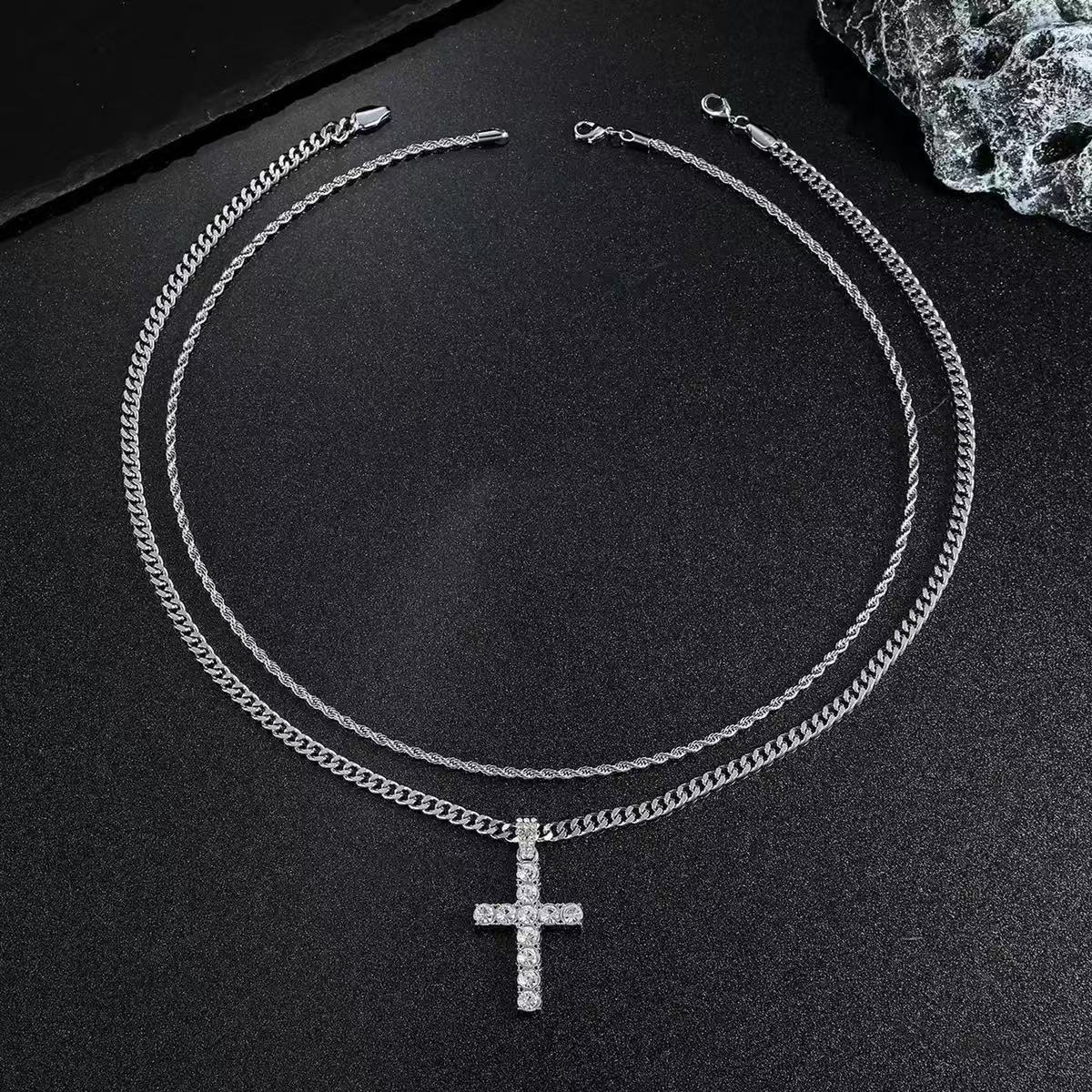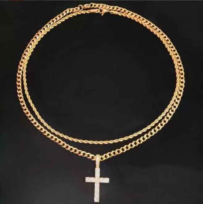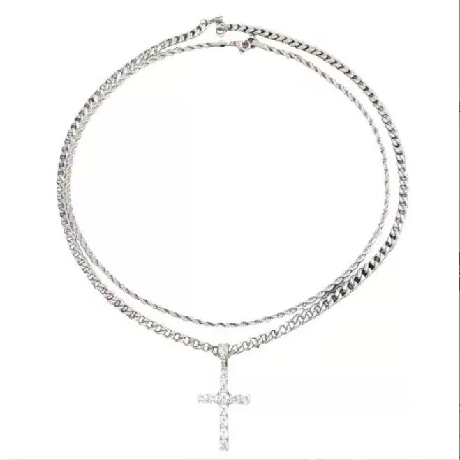 Color: Steel color cross pendant [cuban chain + twist chain]
