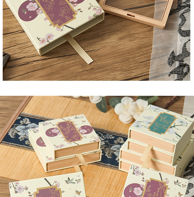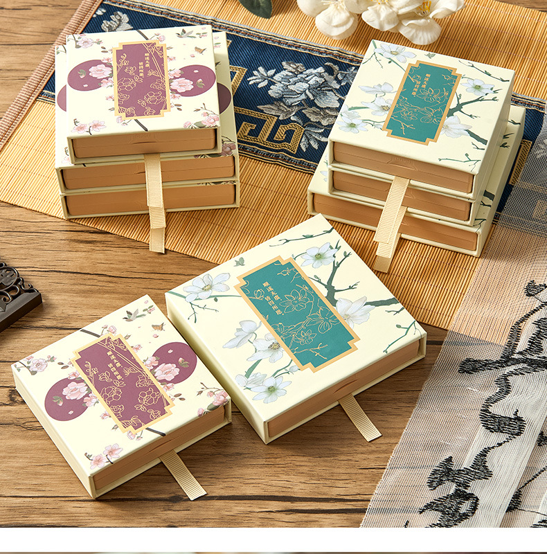 Specifications and models: Blue magnolia + apricot inner box; 9*9*2cm