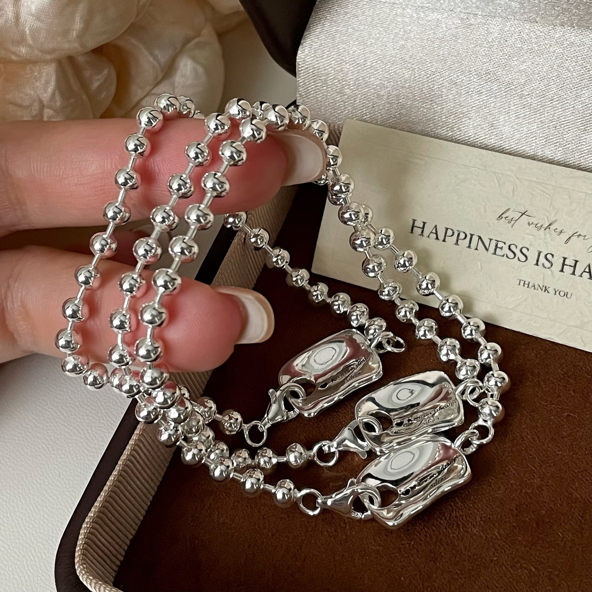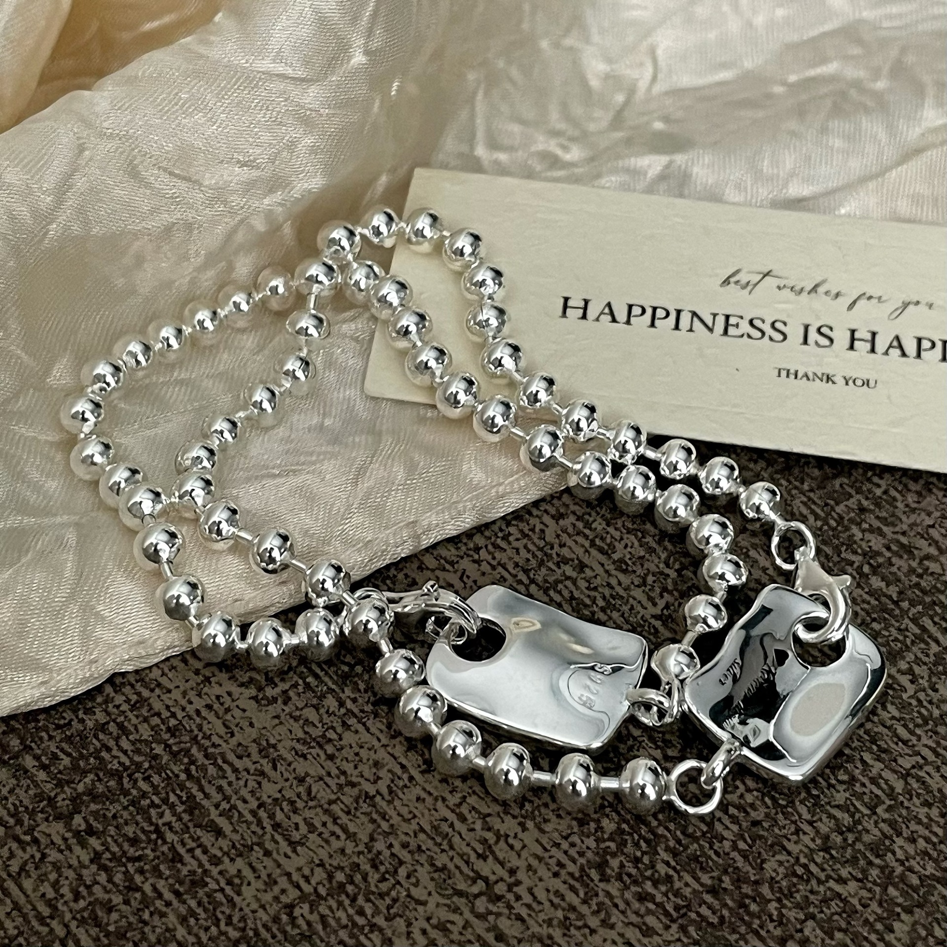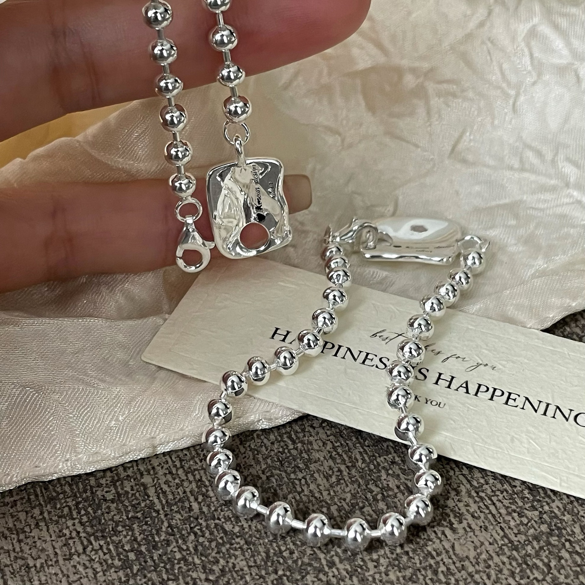 S925 Sterling Silver Square English Bead Bracelet Ins Style Stylish Simple Niche Design Versatile and High-End